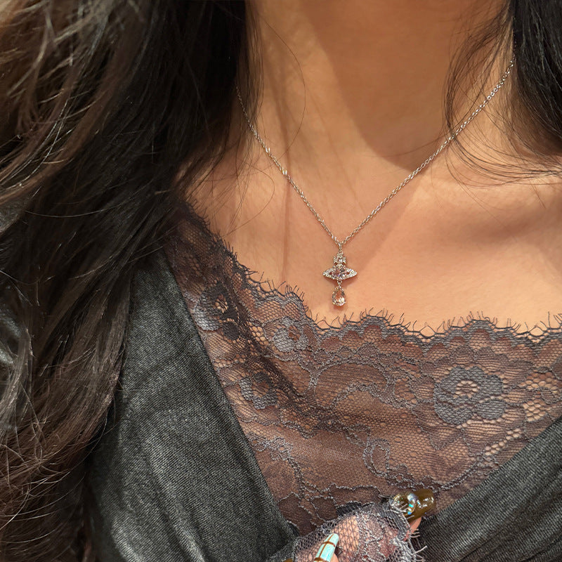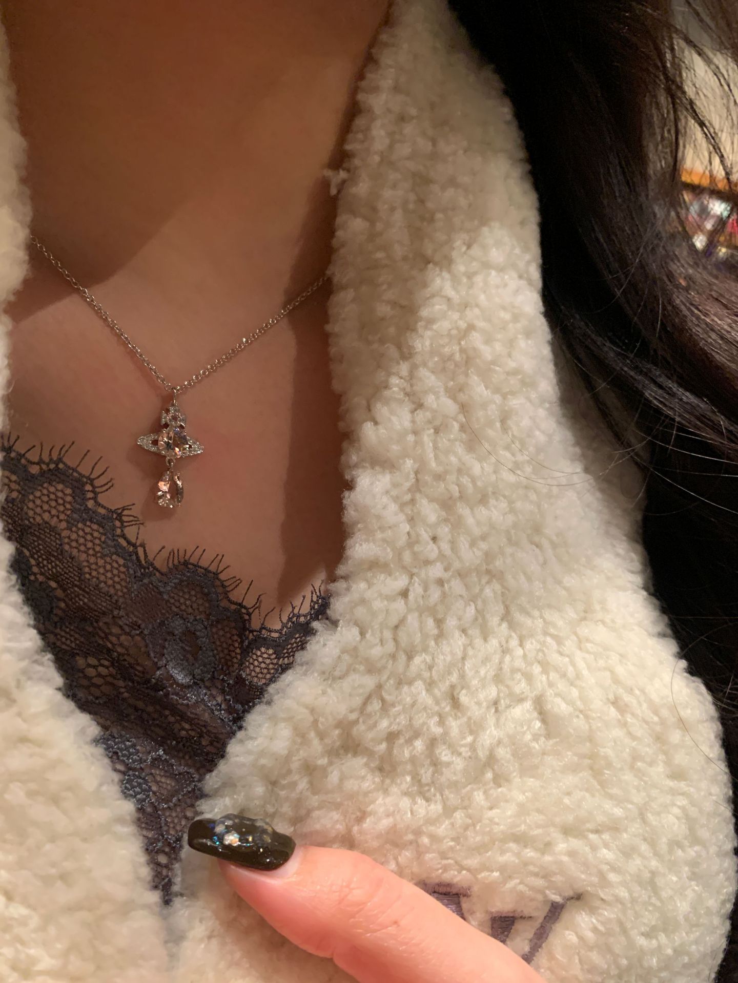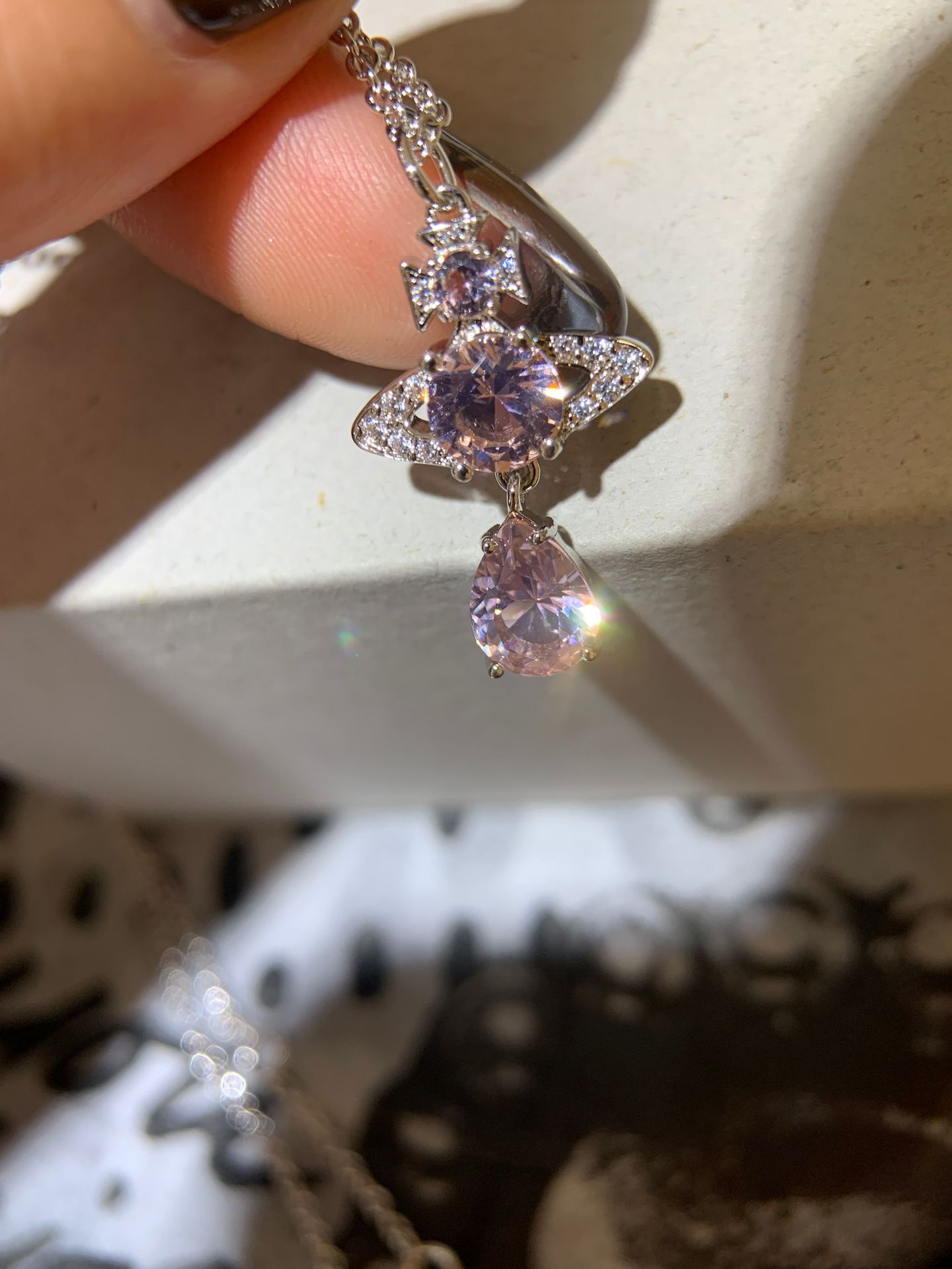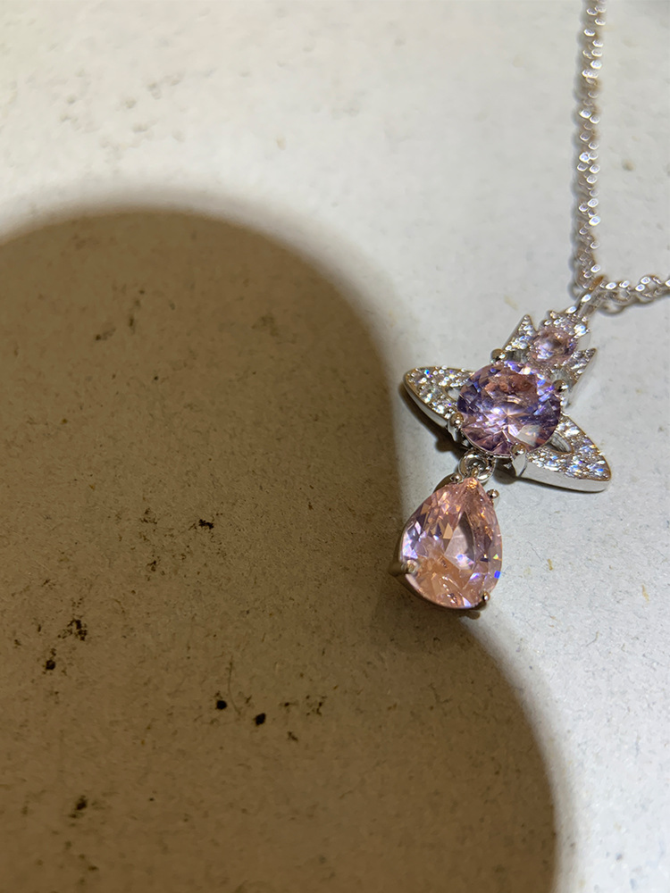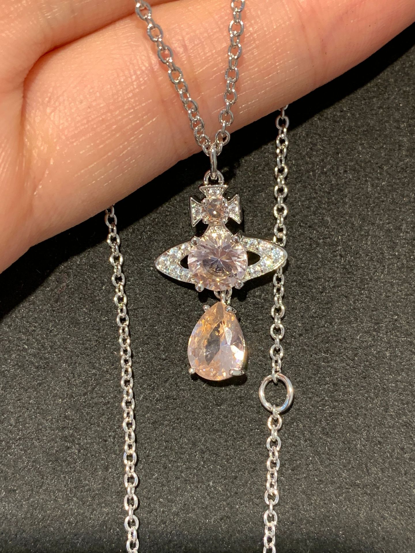 The Queen Mother of the West pink diamond mermaid tears drop diamond necklace Seiko thick gold small sweet potato live broadcast hit
