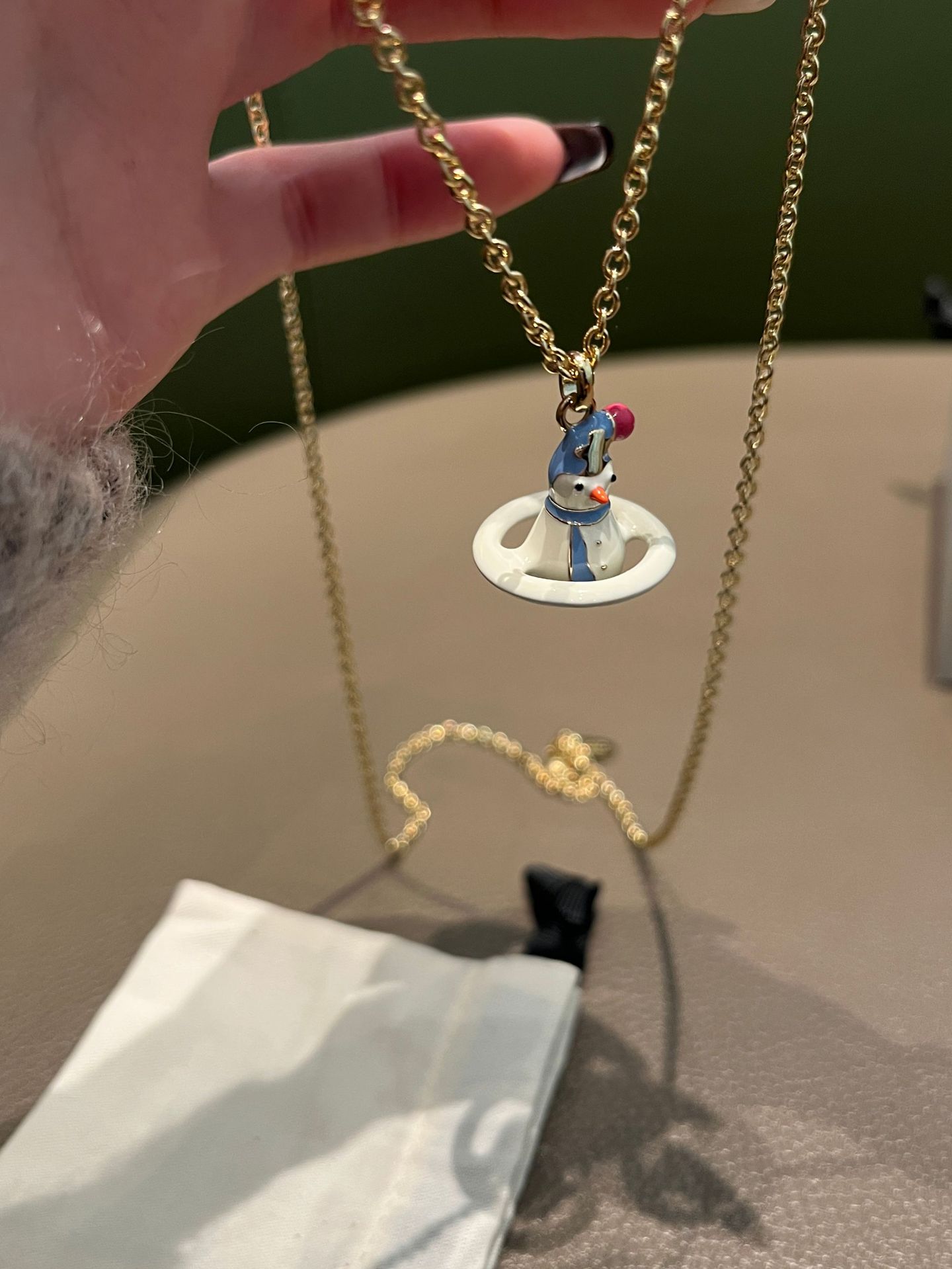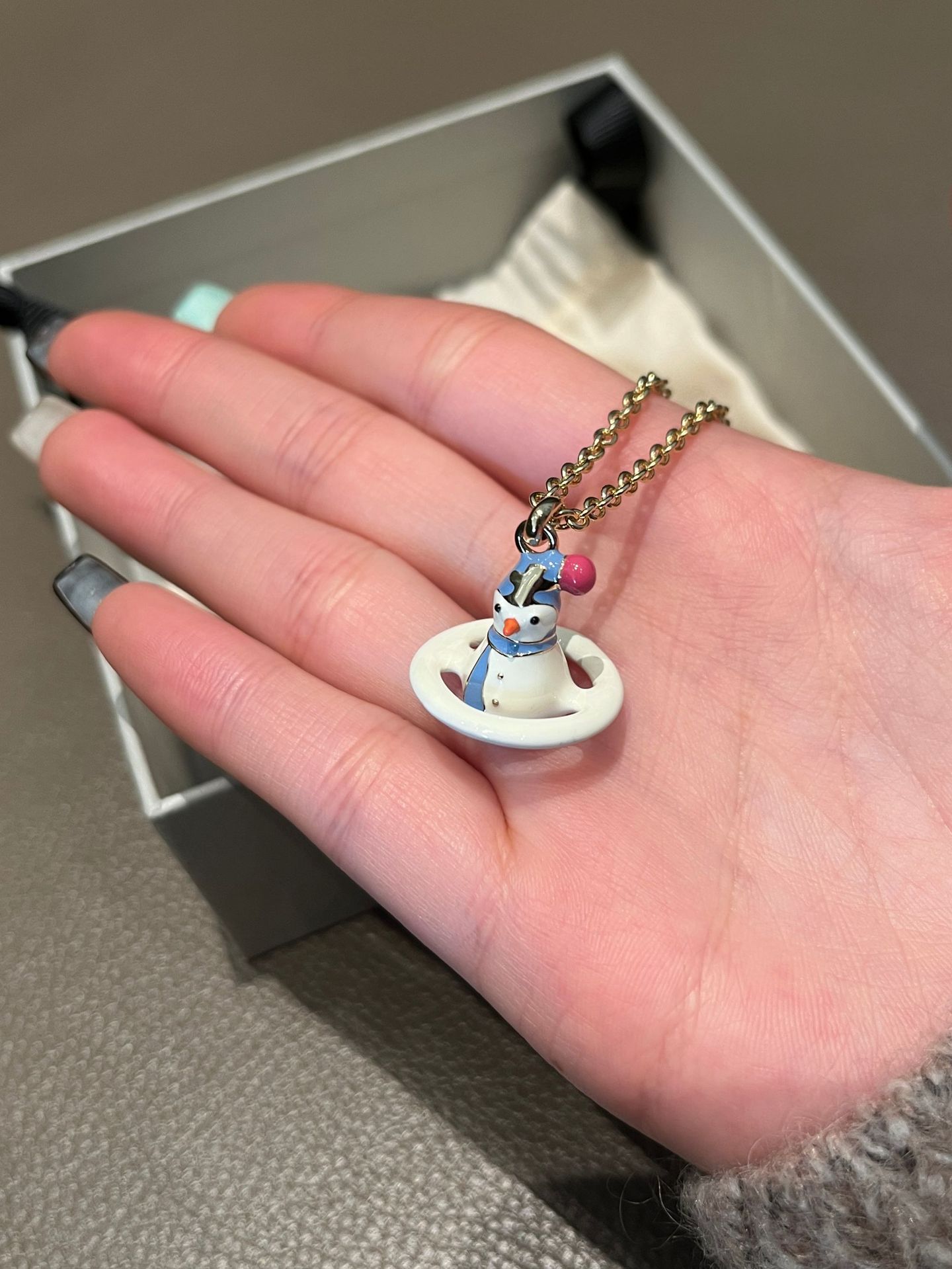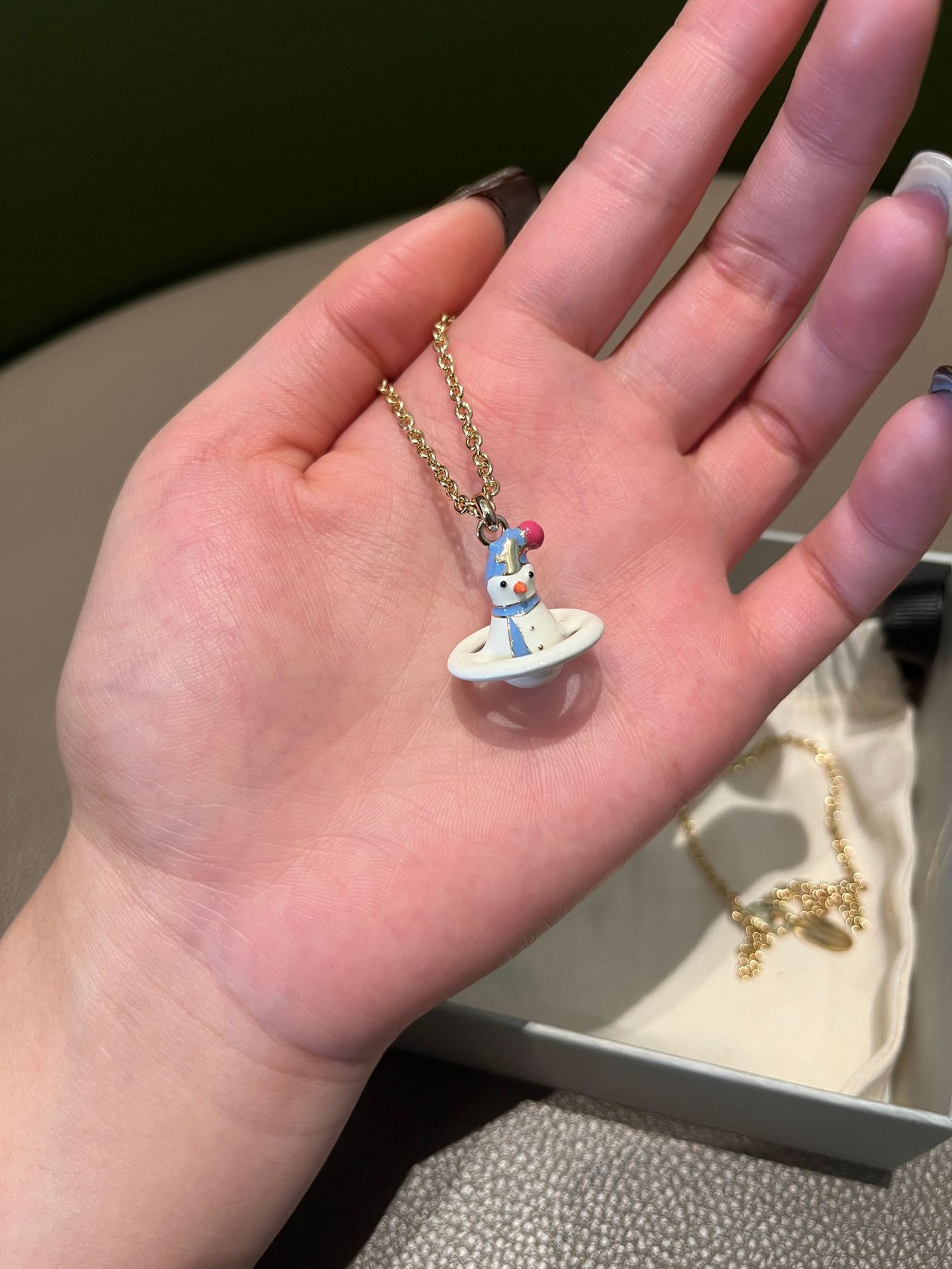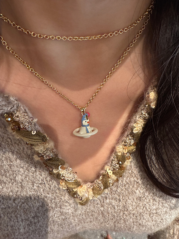 The Queen Mother of the West second-hand little snowman necklace Christmas series three-dimensional orb Saturn pendant a two-wear sweater chain