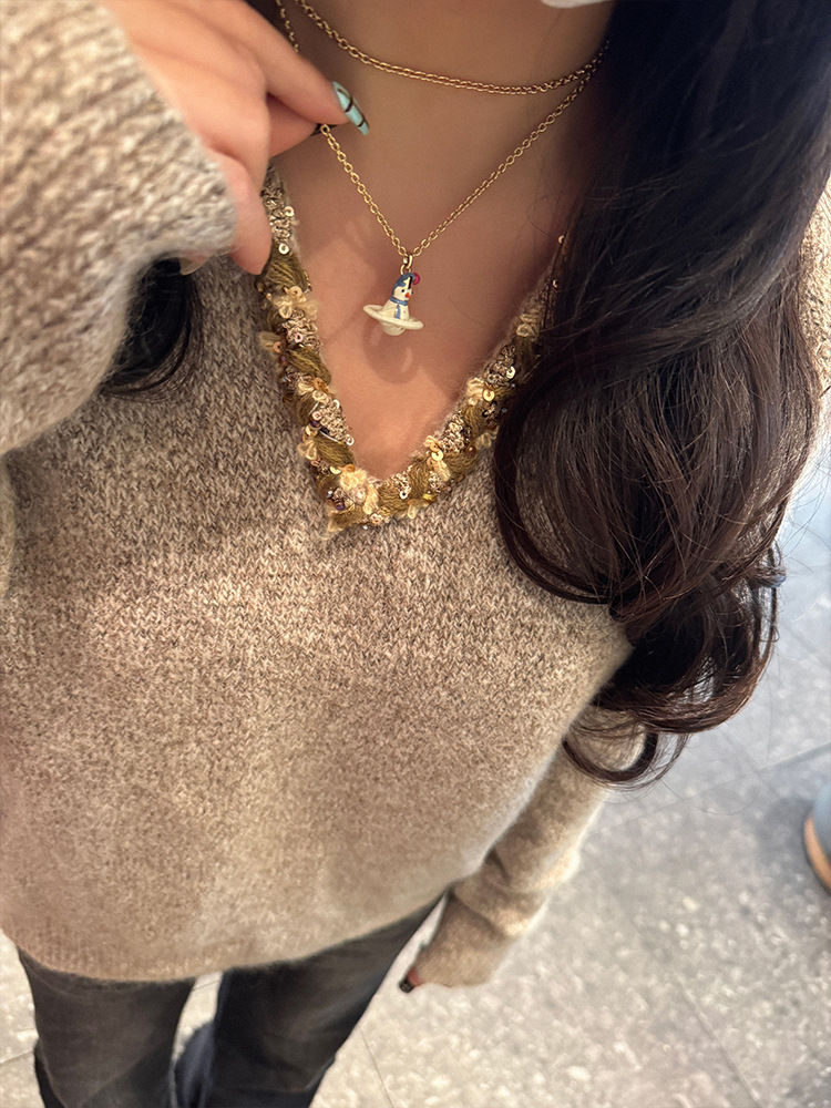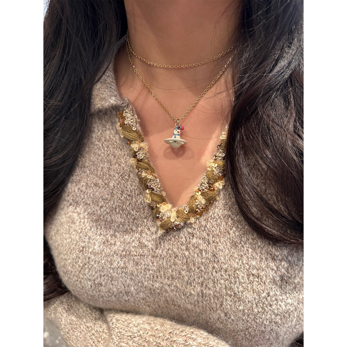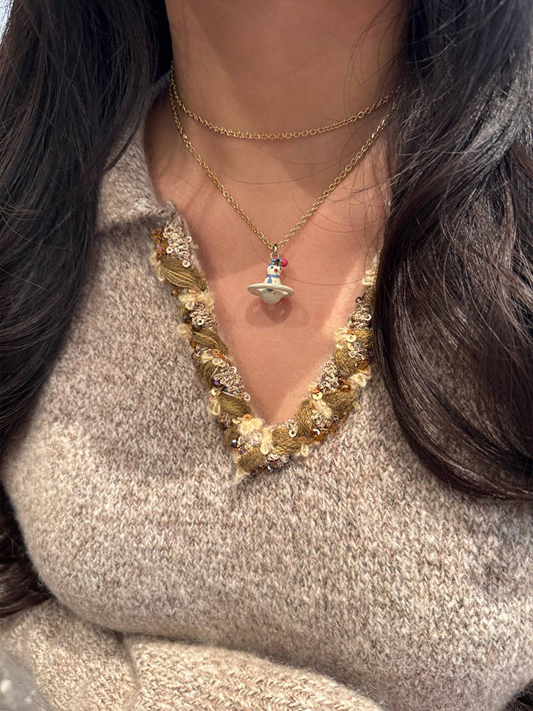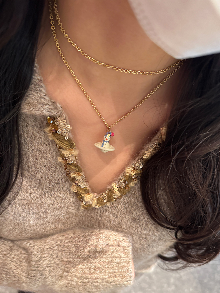The Queen Mother of the West second-hand little snowman necklace Christmas series three-dimensional orb Saturn pendant a two-wear sweater chain