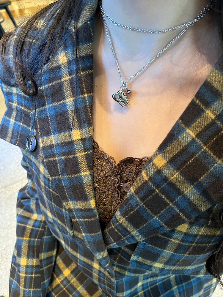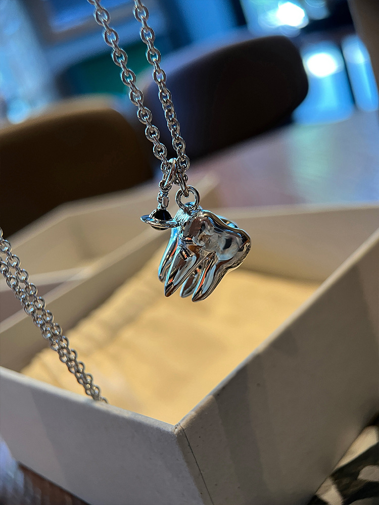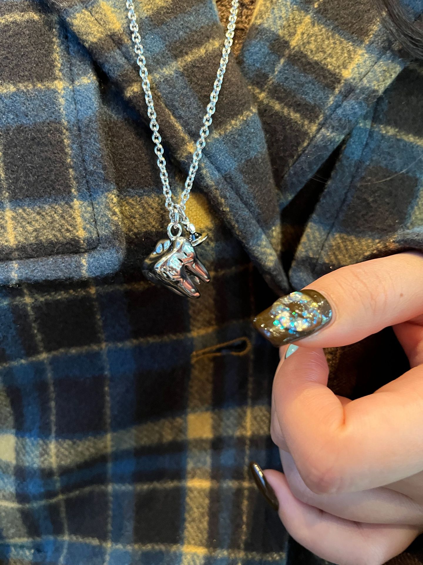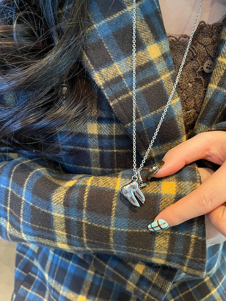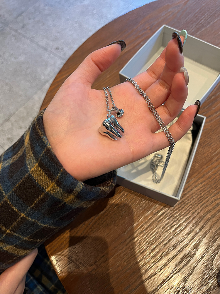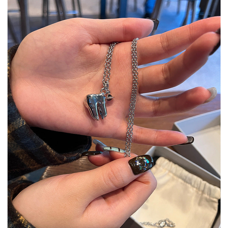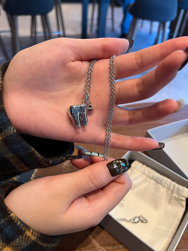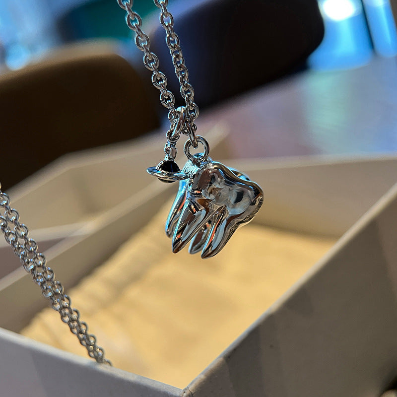 The Queen Mother of the West, three-dimensional teeth, Saturn necklace, punk style, letter wisdom tooth pendant, a two-wear high-quality sweater chain