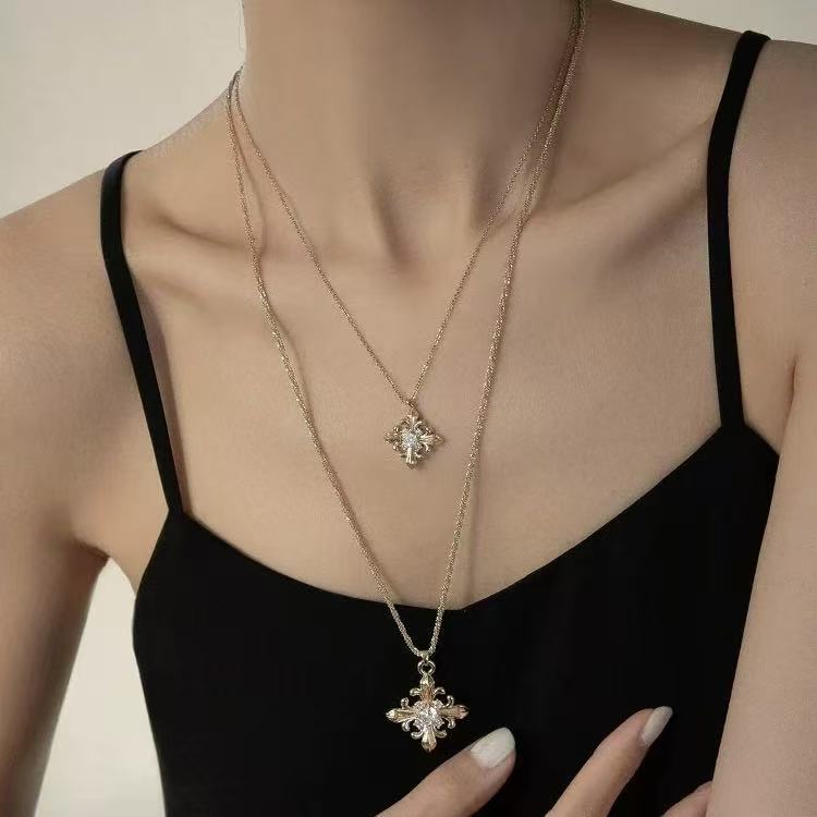 Three horizontal iris chain of the same style, high-end minimalist collarbone chain, niche design necklace for women