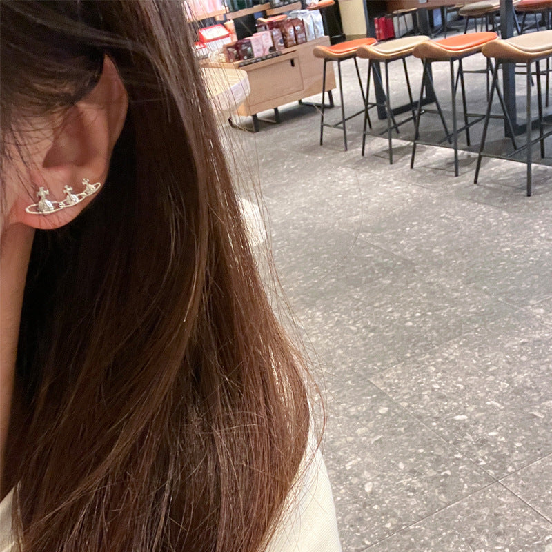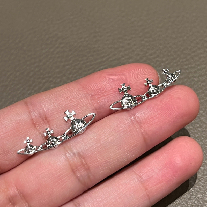 Three rows of Saturn stud earrings for the Queen Mother of the West gold and silver earrings