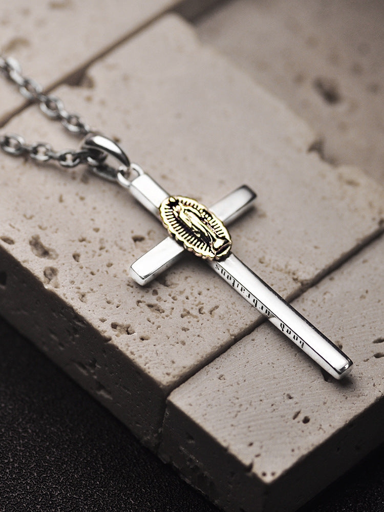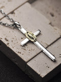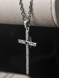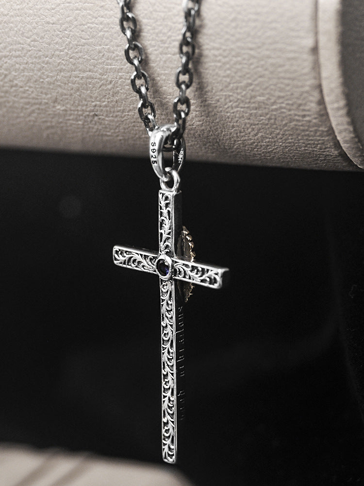 Tide s925 silver European and American cross necklace pendant men and women blue zircon Internet celebrity hip hop fashion simple personality pendant