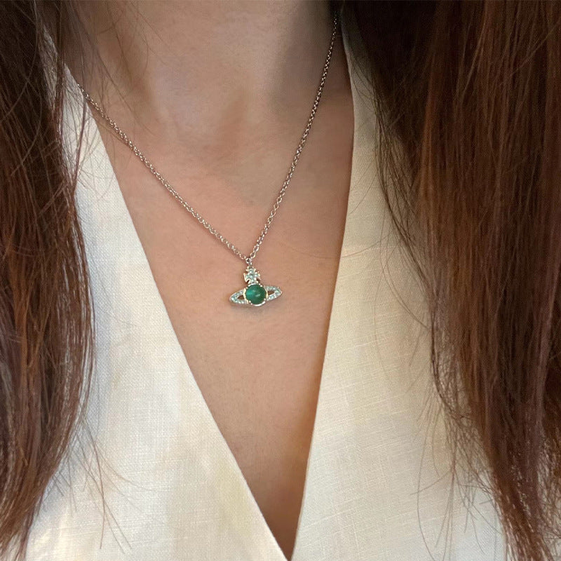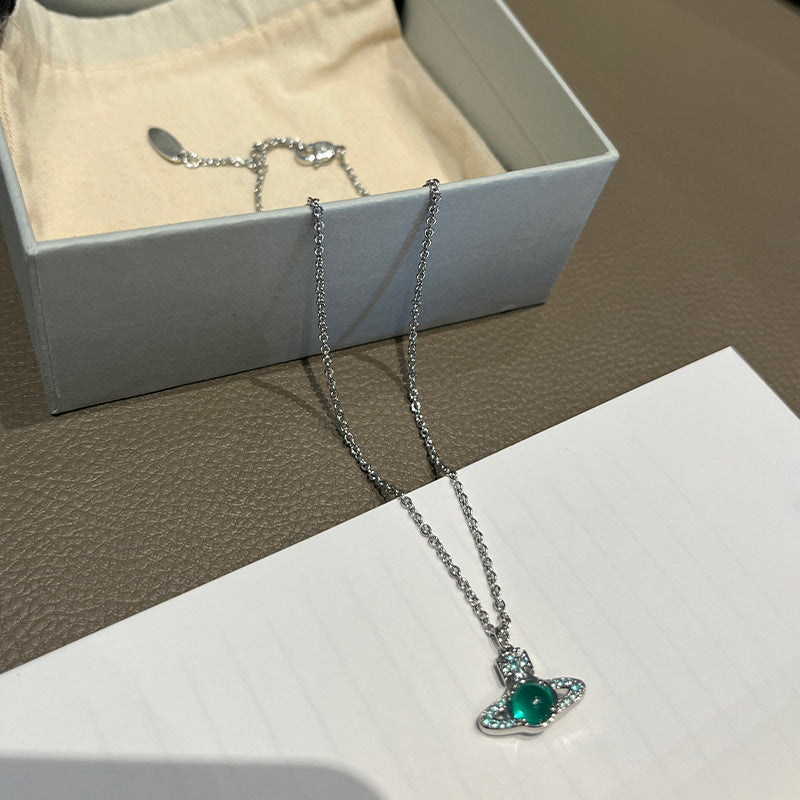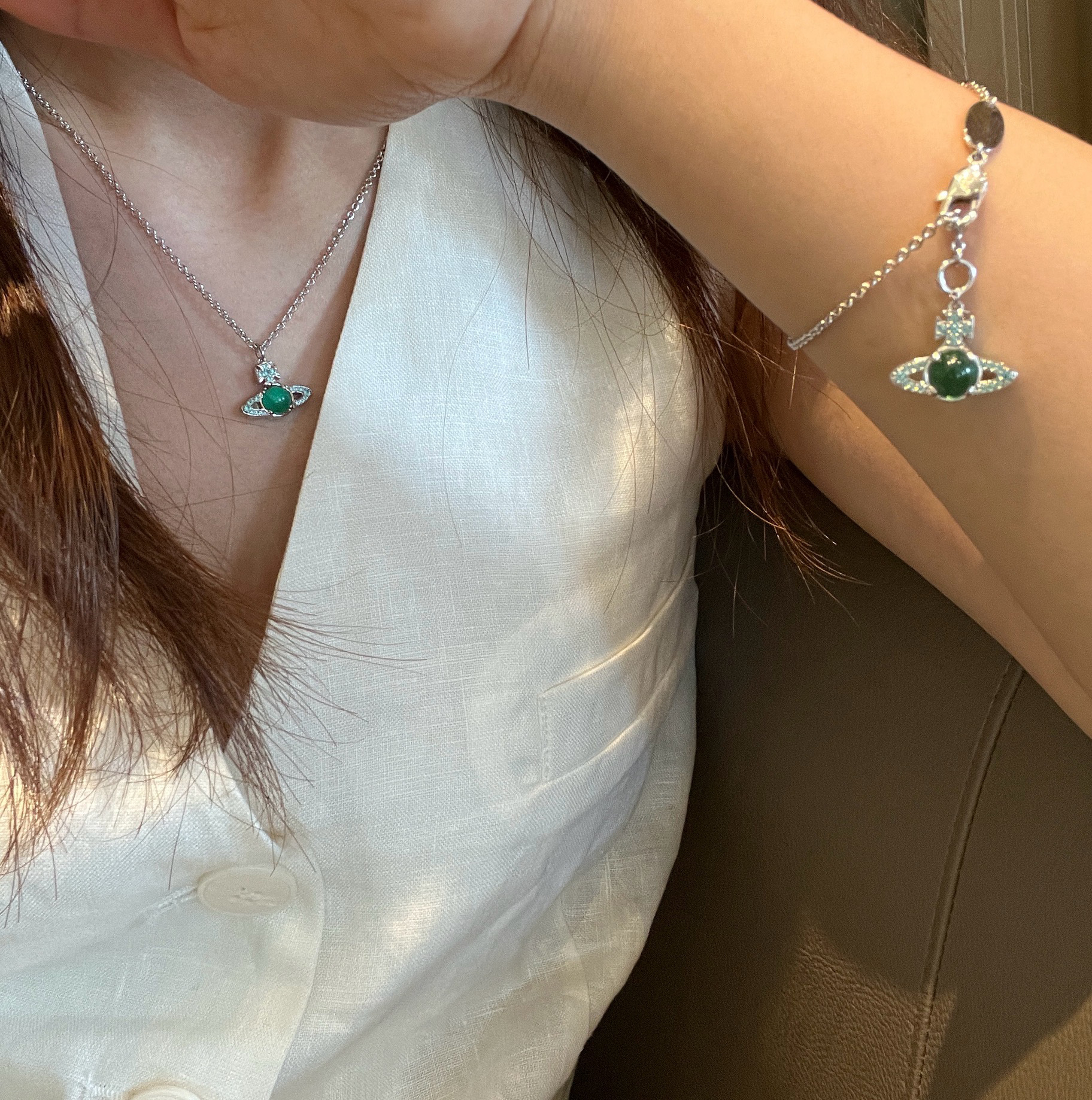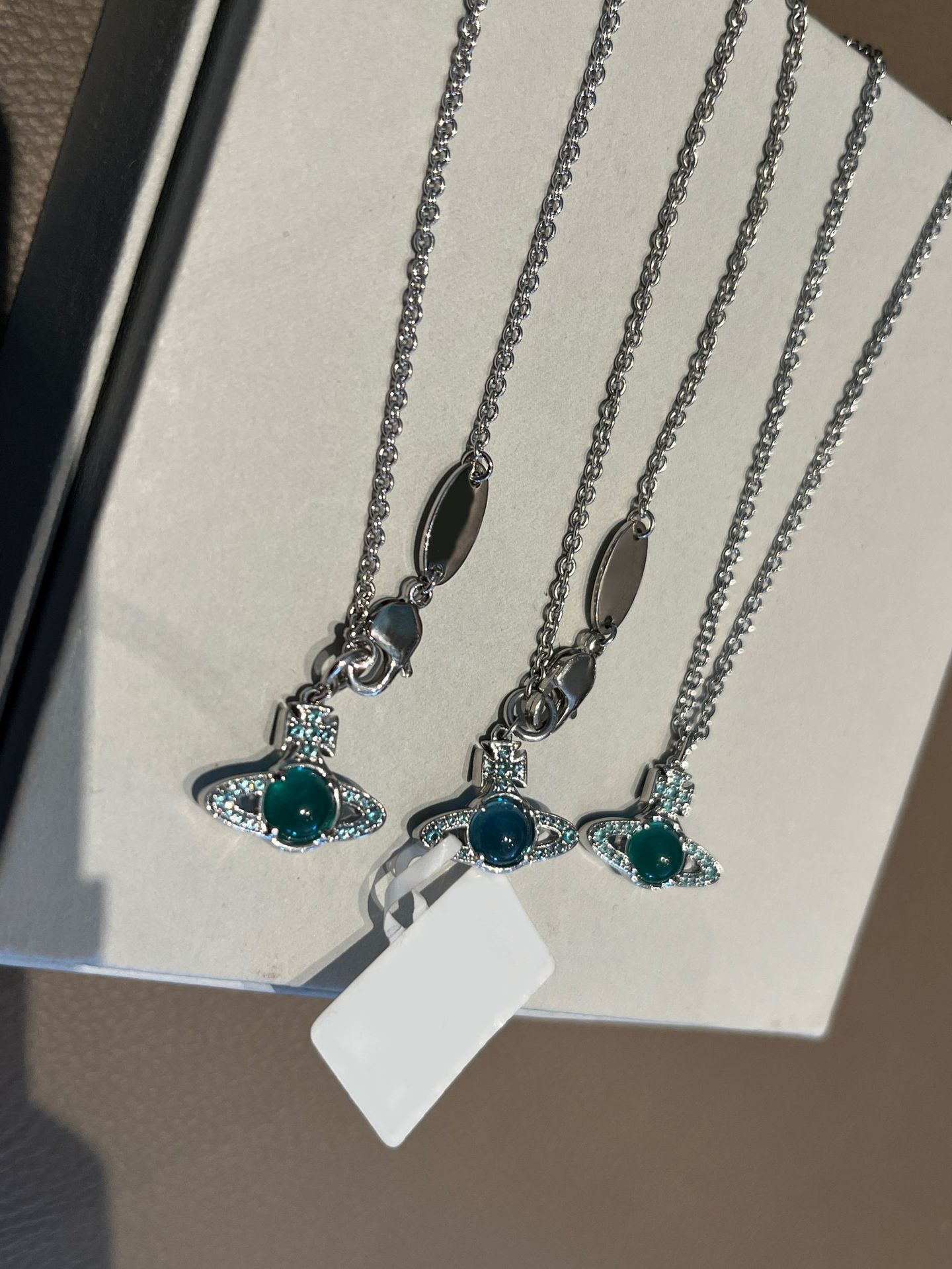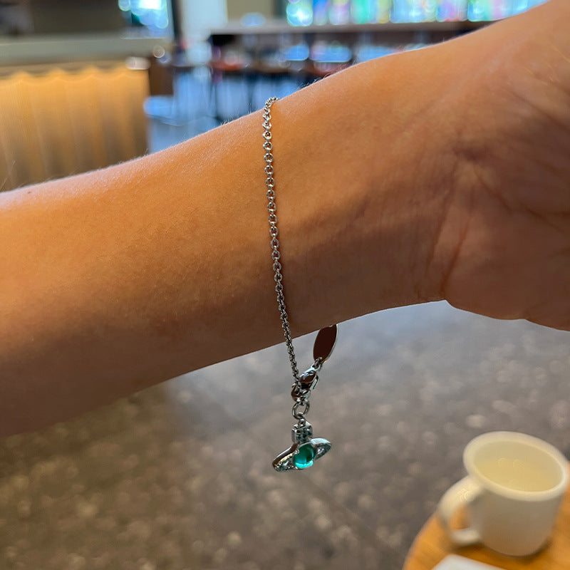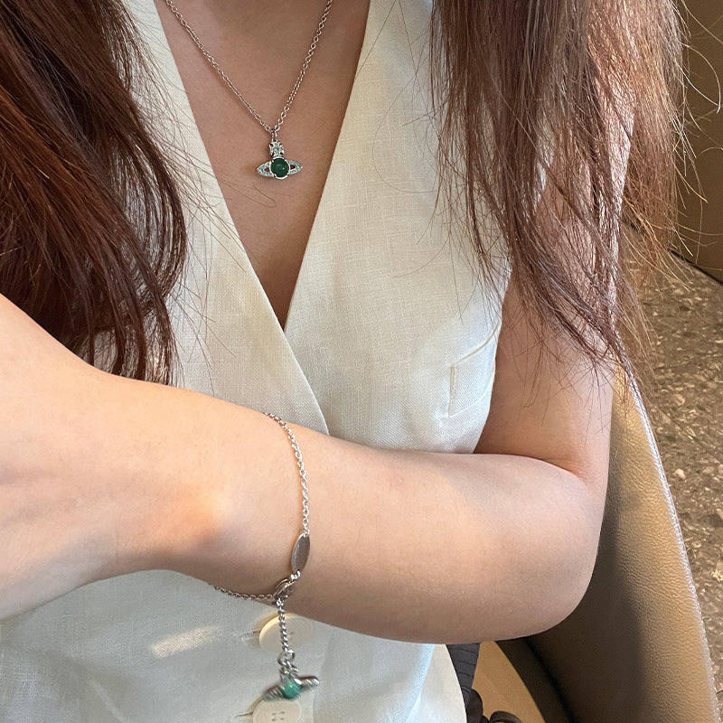 West Queen Mother Lake Blue Transfer Bead Necklace Bracelet Turn Pendant Niche Fashion Jewelry