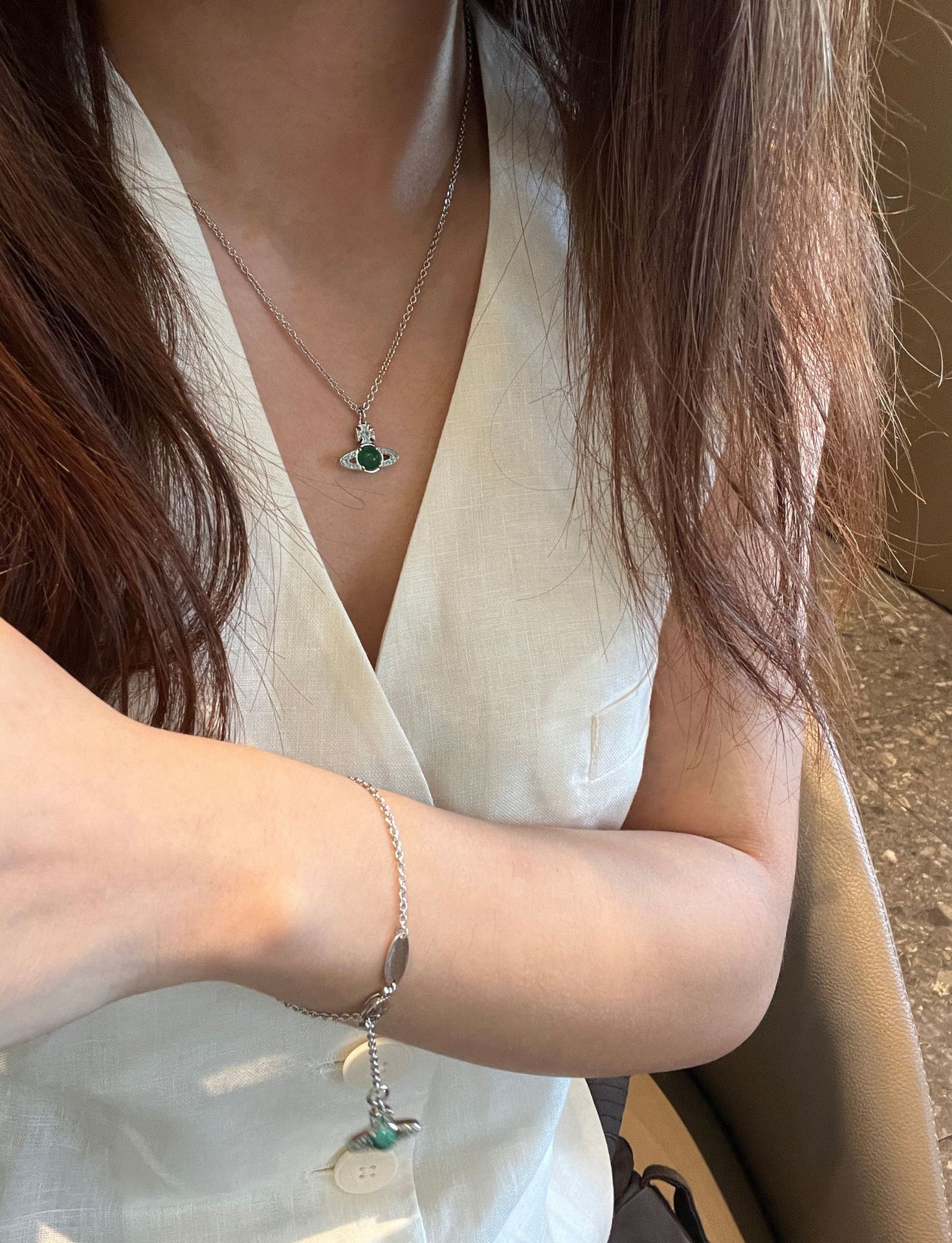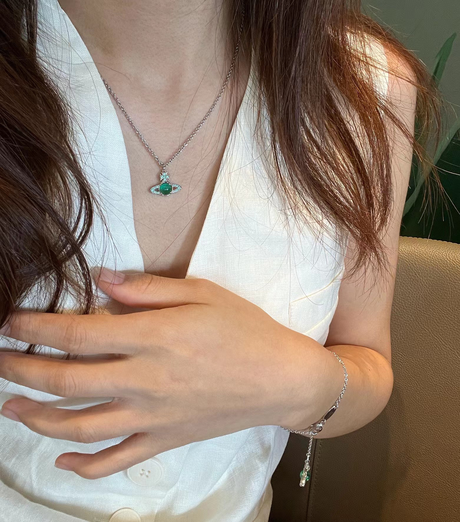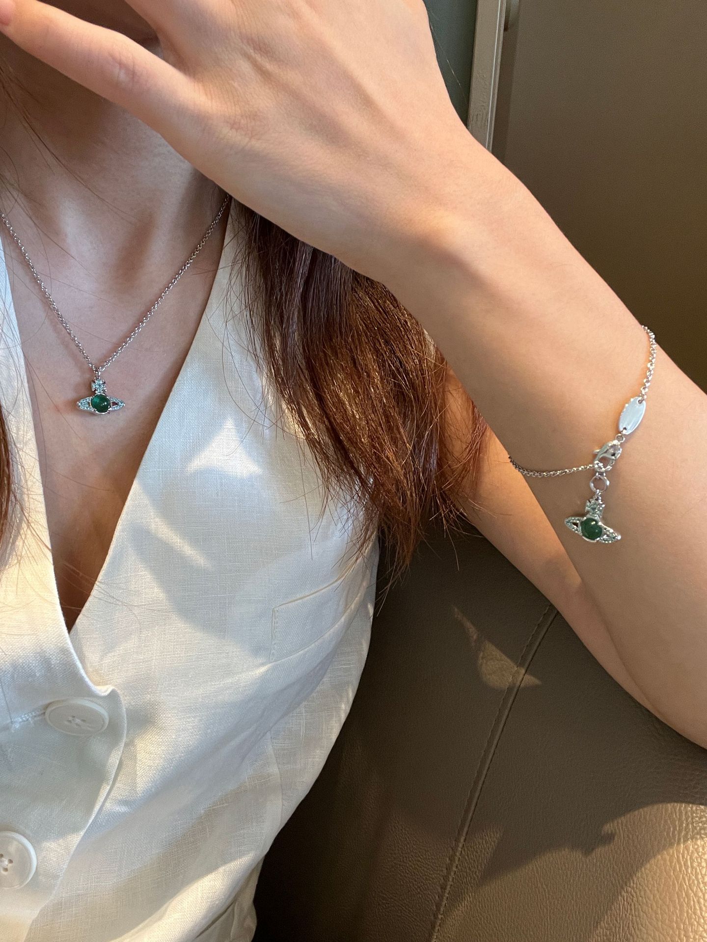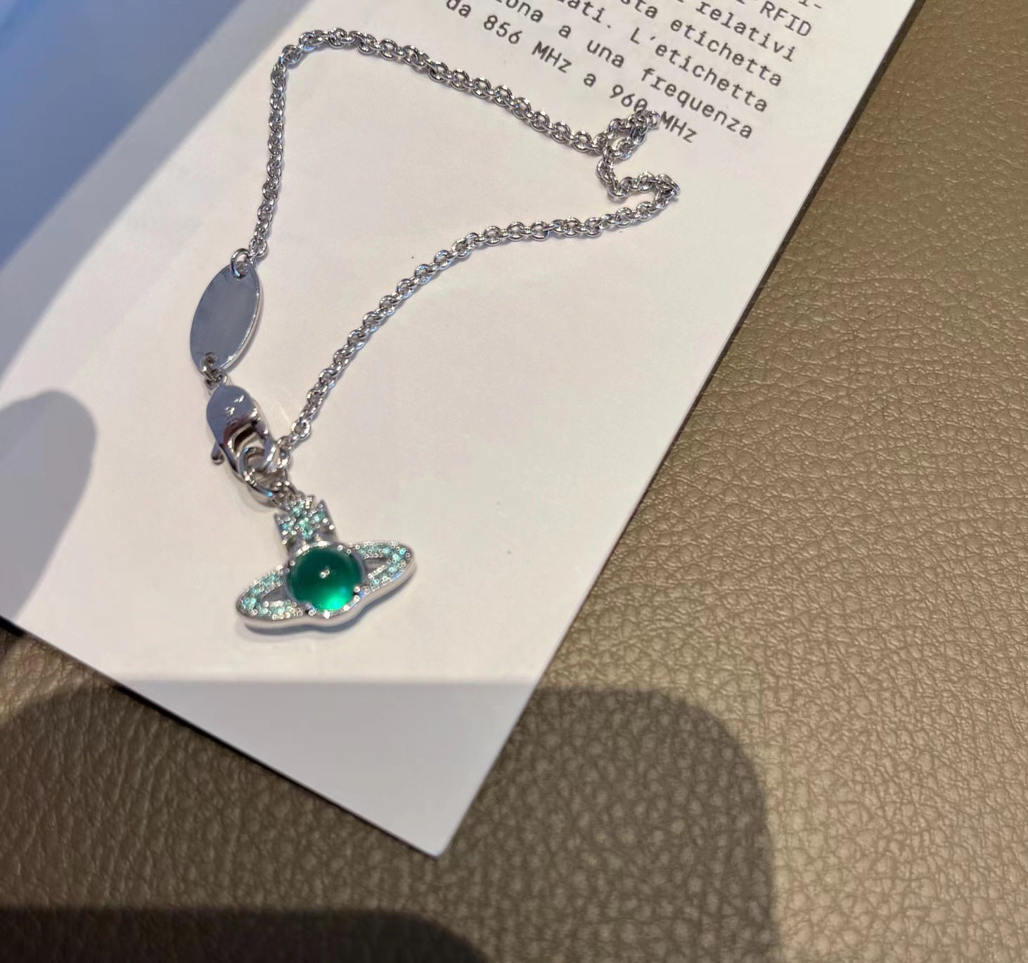 West Queen Mother Lake Blue Transfer Bead Necklace Bracelet Turn Pendant Niche Fashion Jewelry