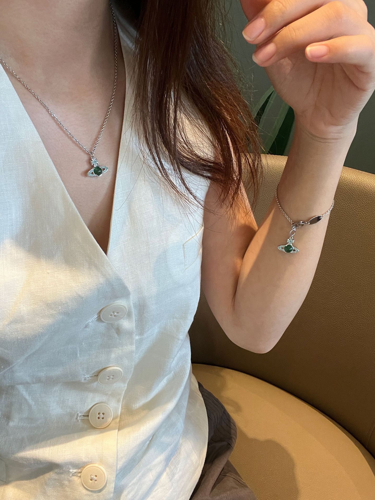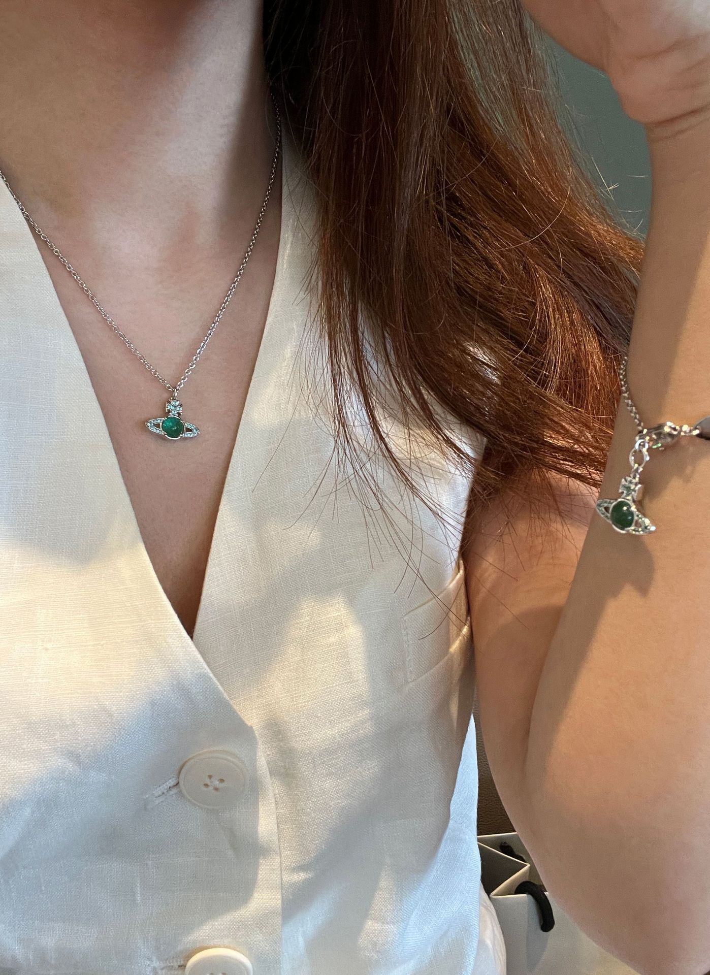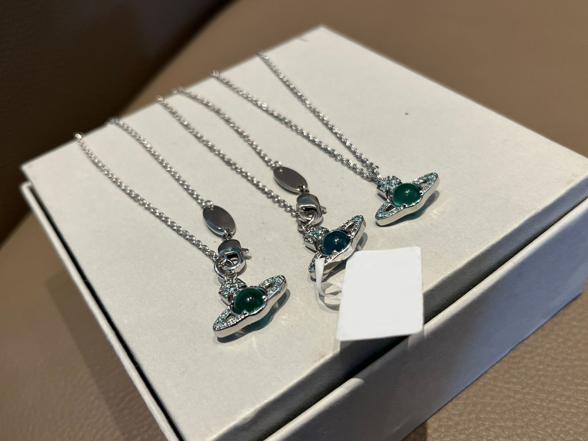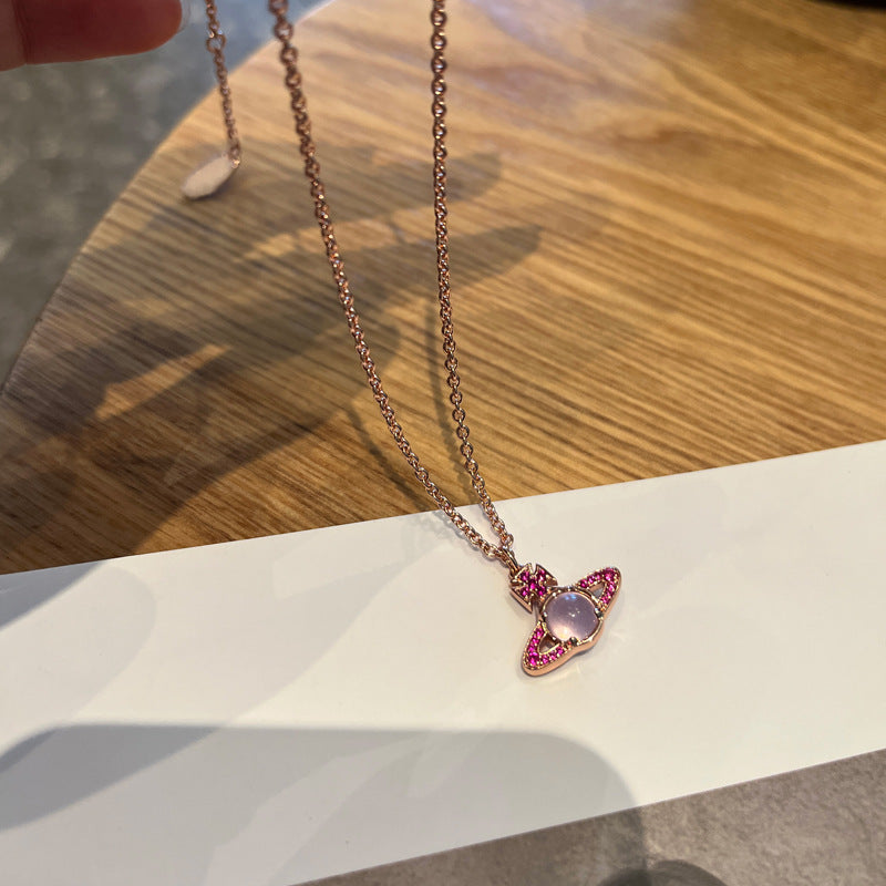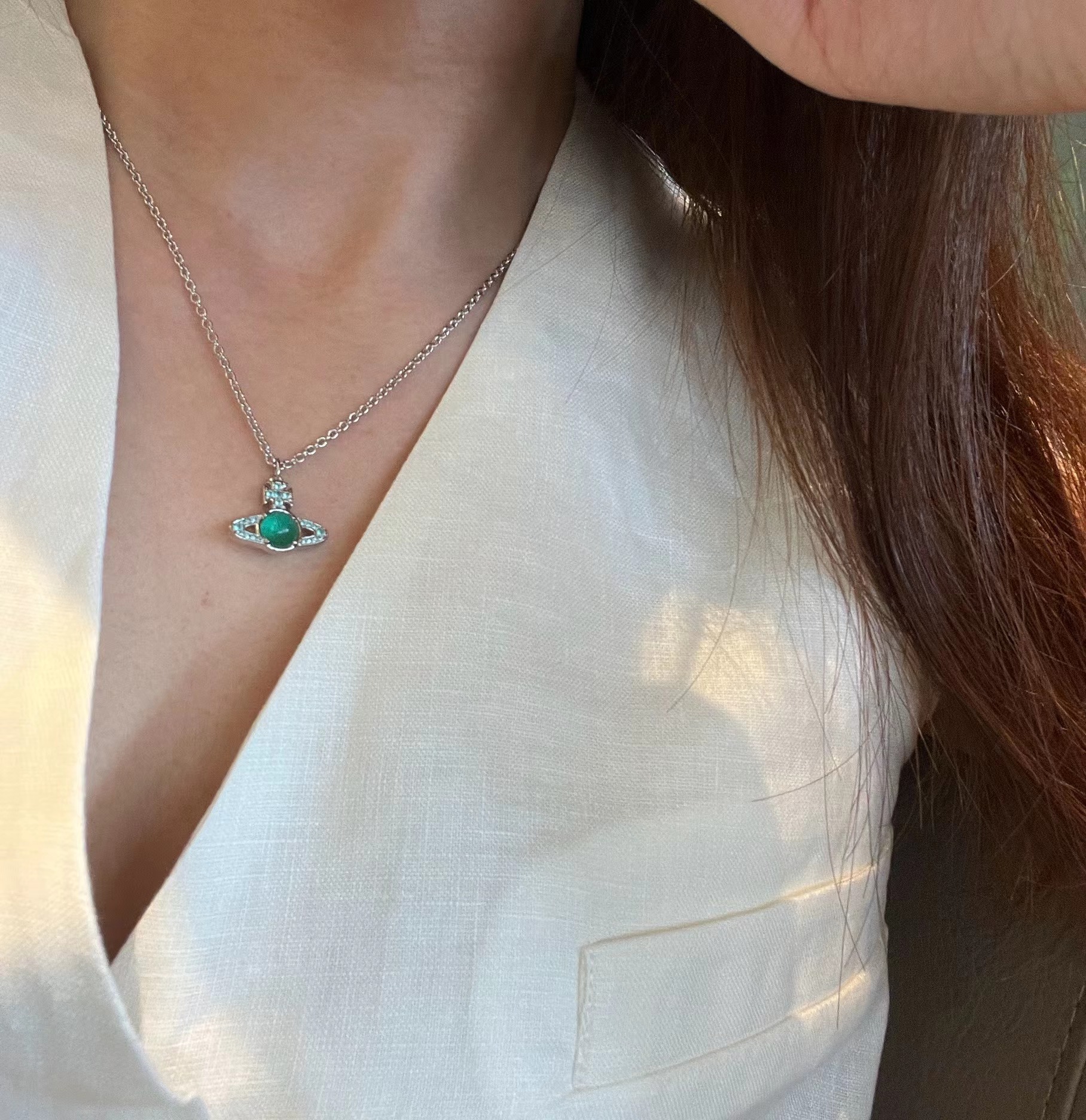 West Queen Mother Lake Blue Transfer Bead Necklace Bracelet Turn Pendant Niche Fashion Jewelry
