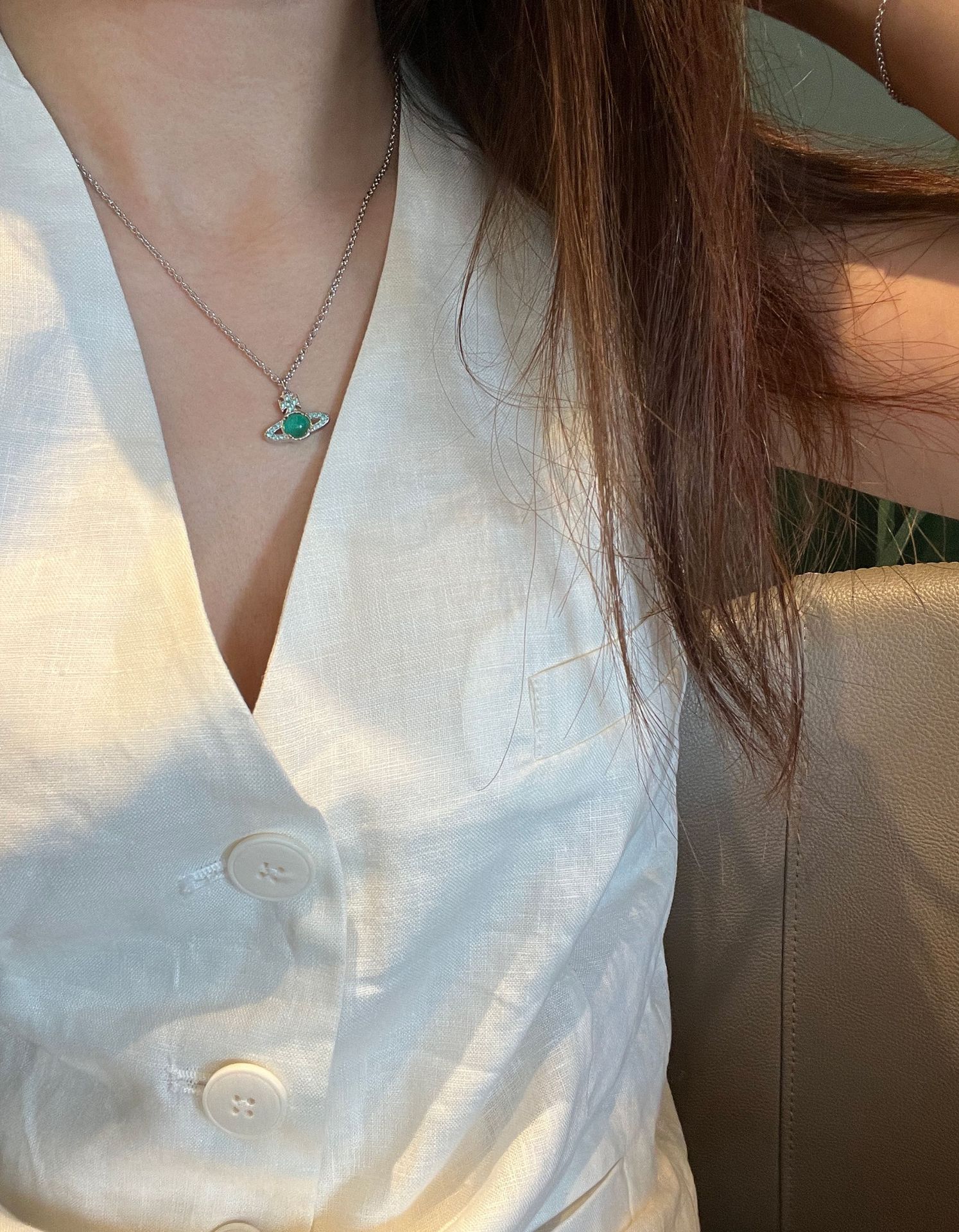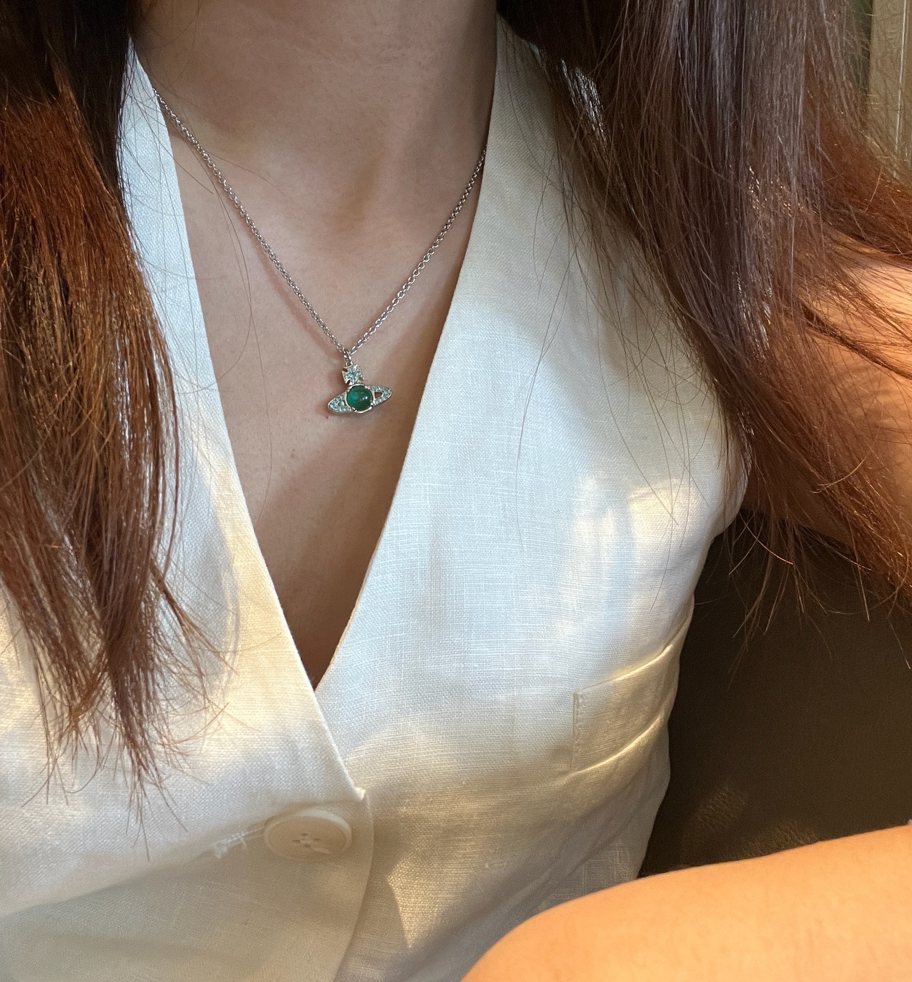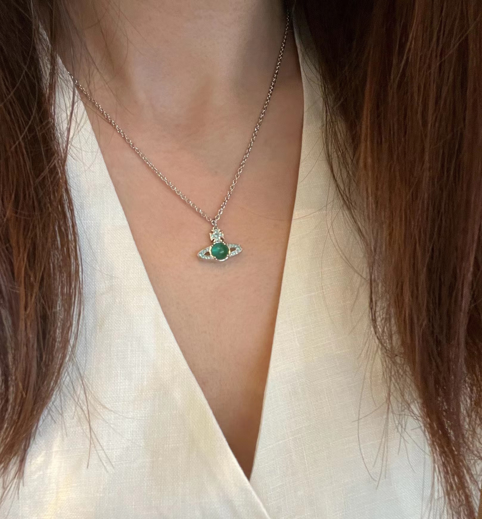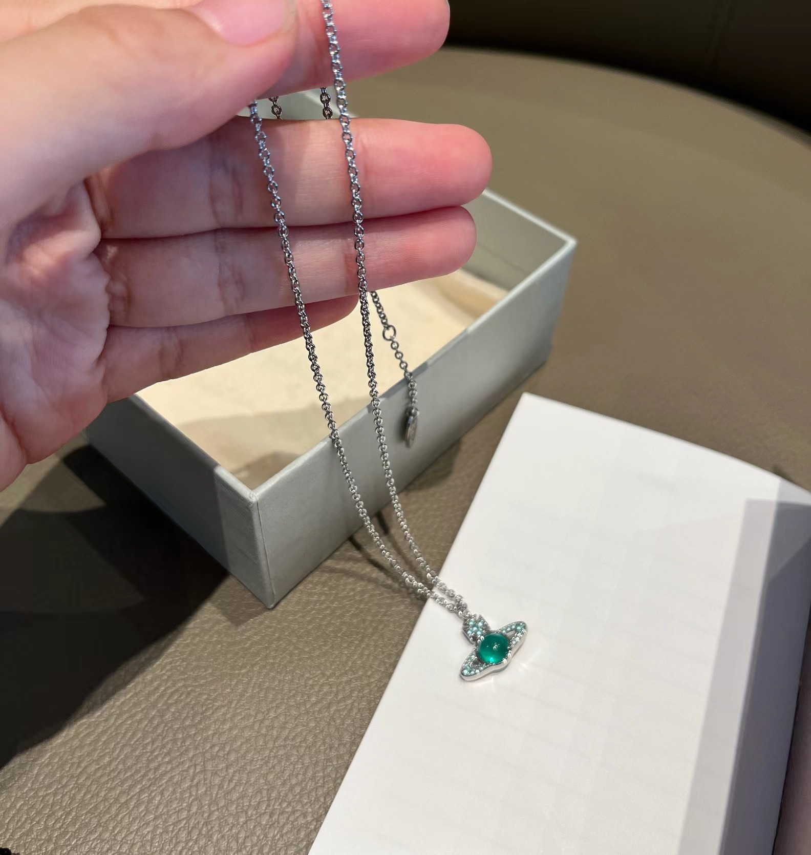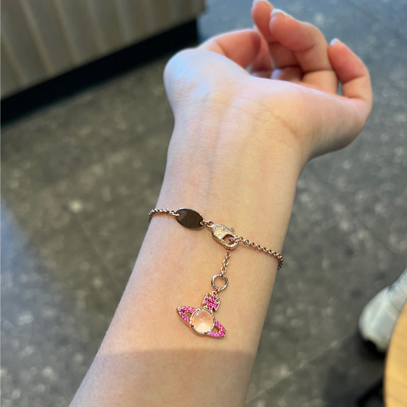West Queen Mother Lake Blue Transfer Bead Necklace Bracelet Turn Pendant Niche Fashion Jewelry