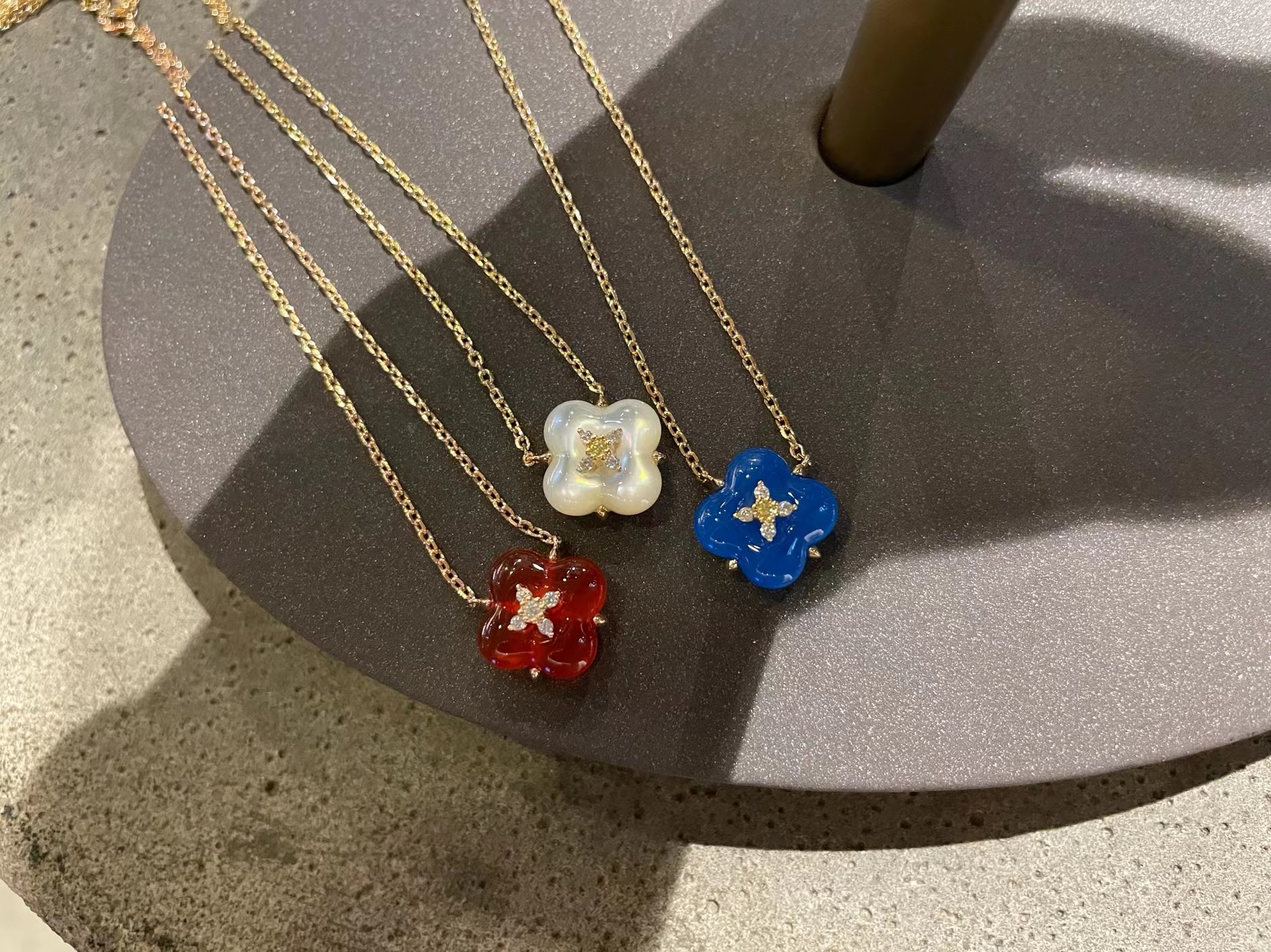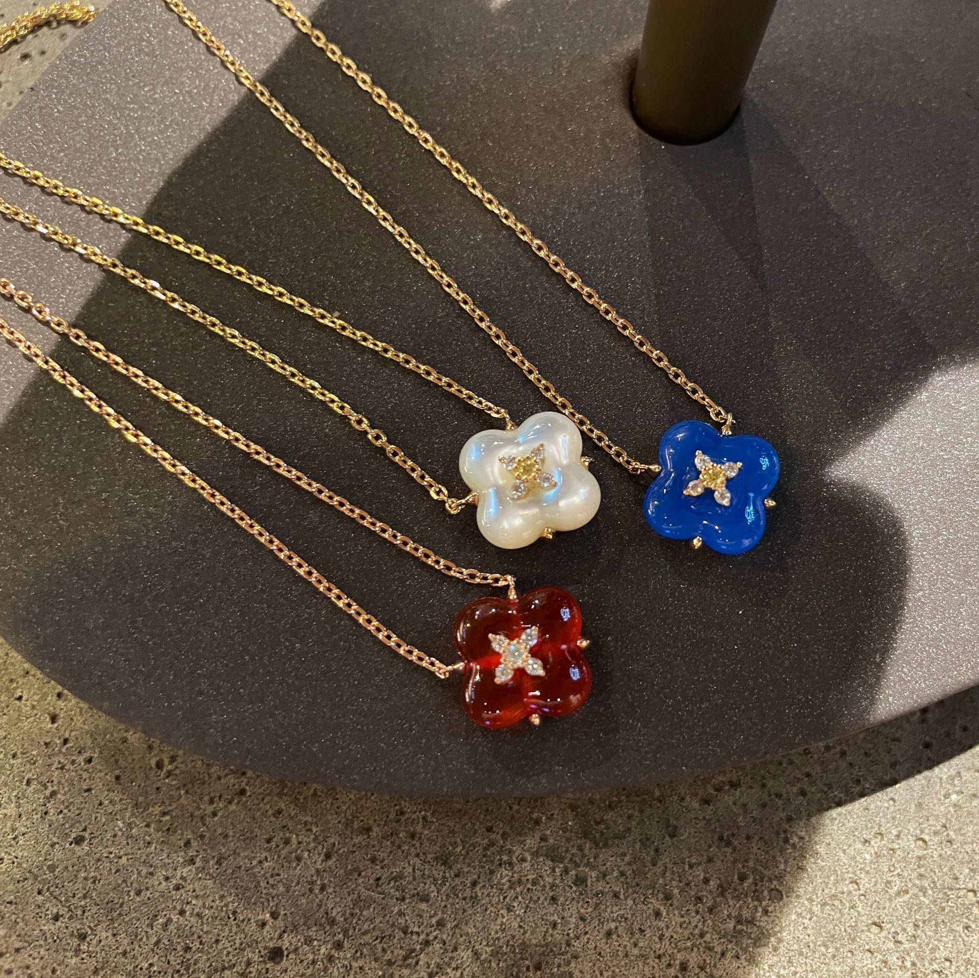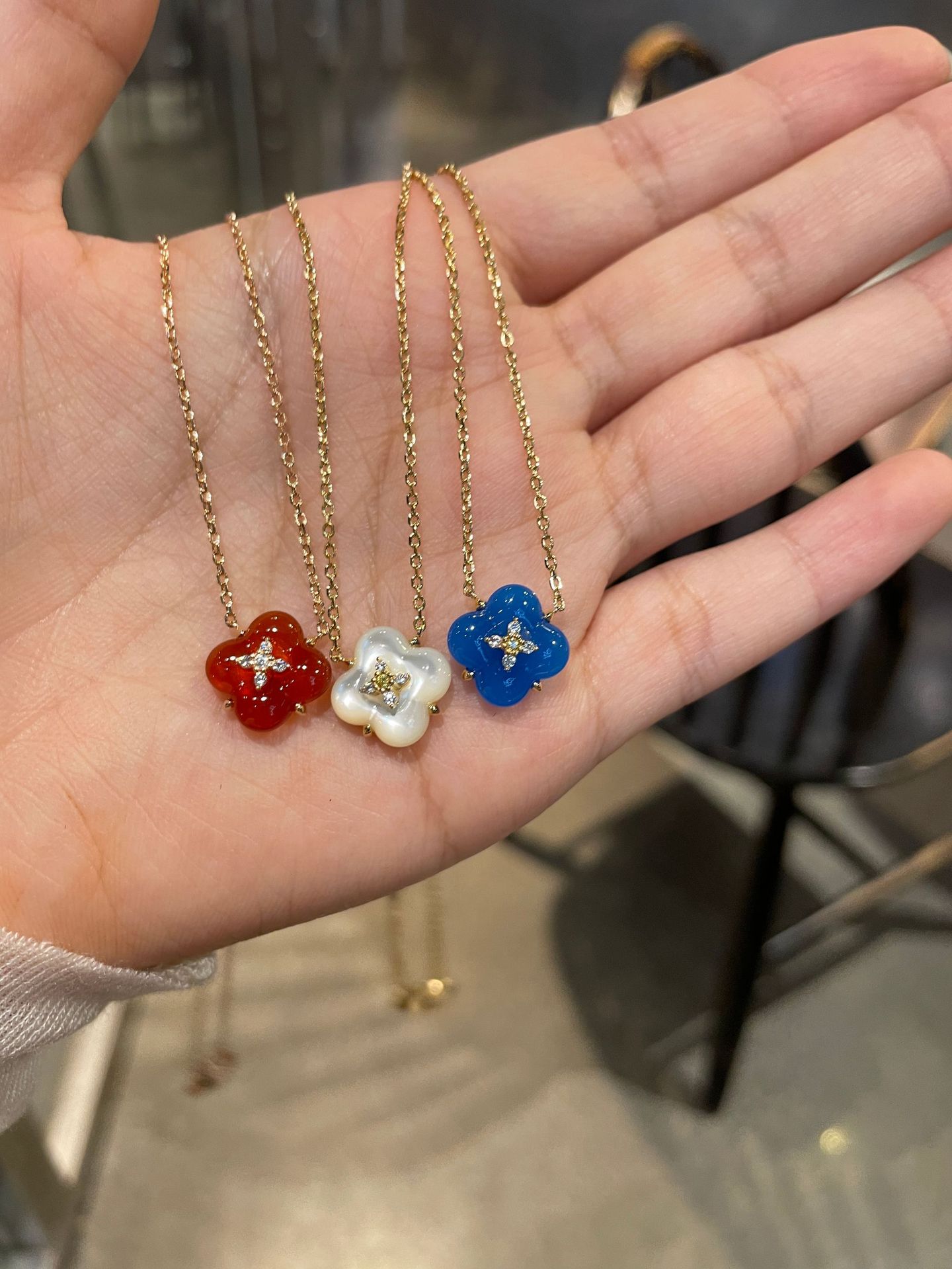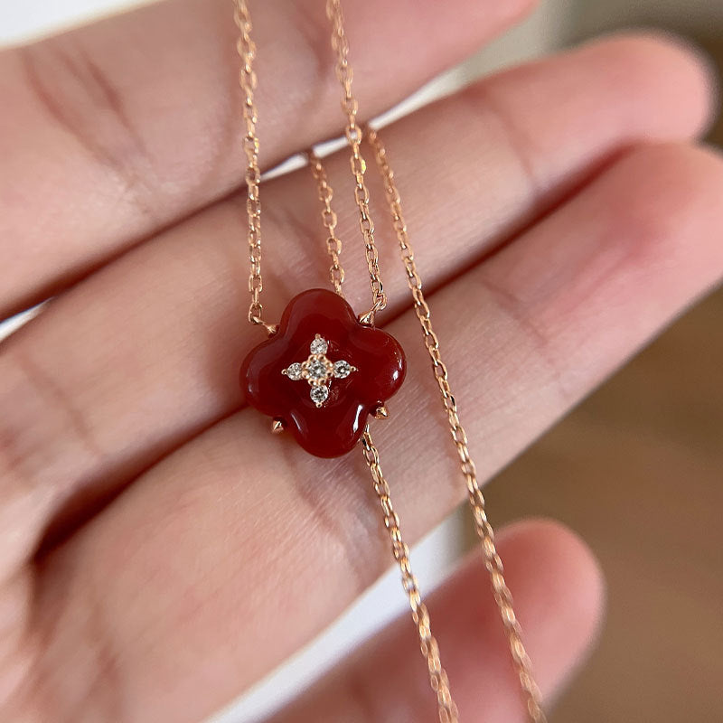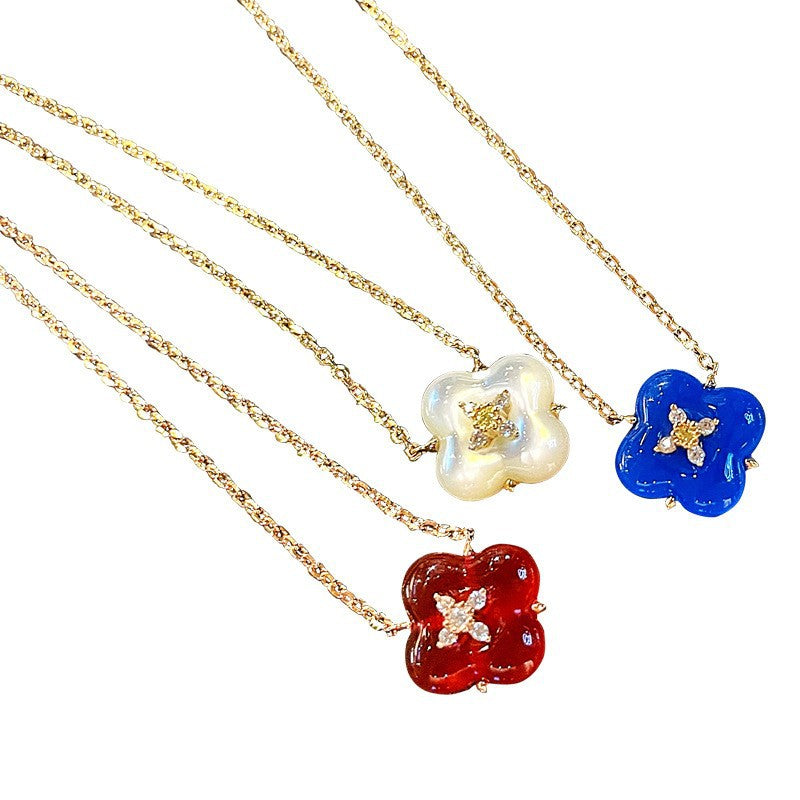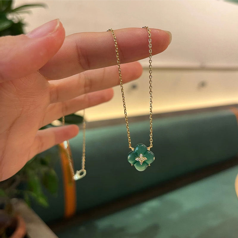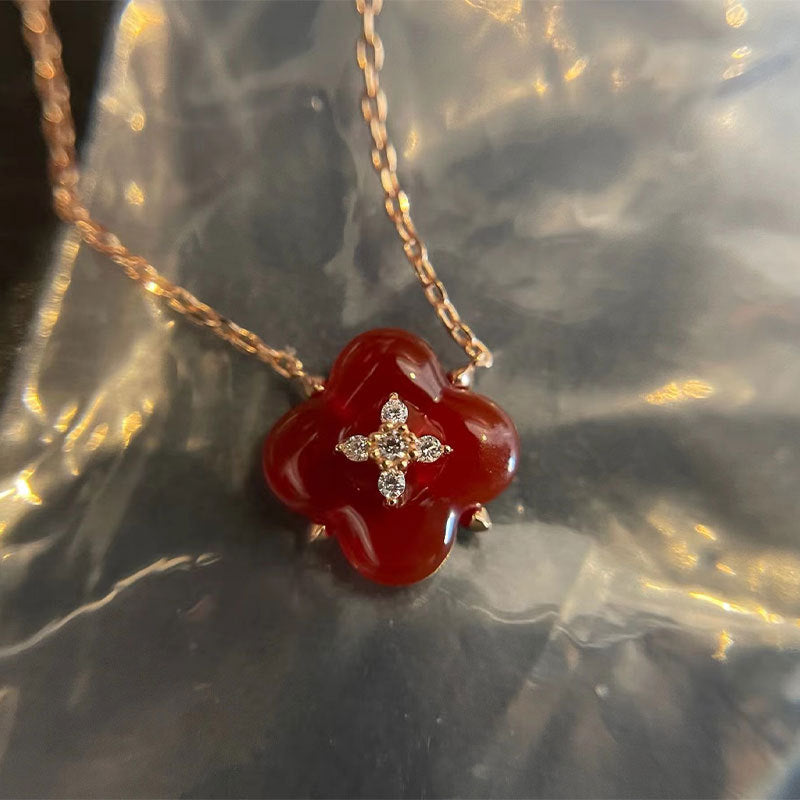 Wishing Fountain Clover Necklace White Fritillary Carnelian Blue Chalcedony Flower Pendant UK Niche