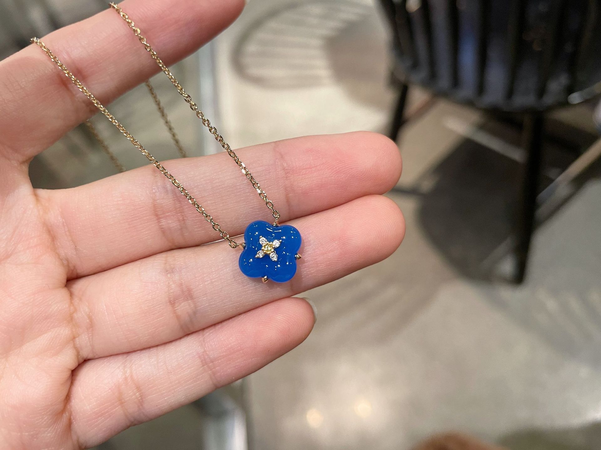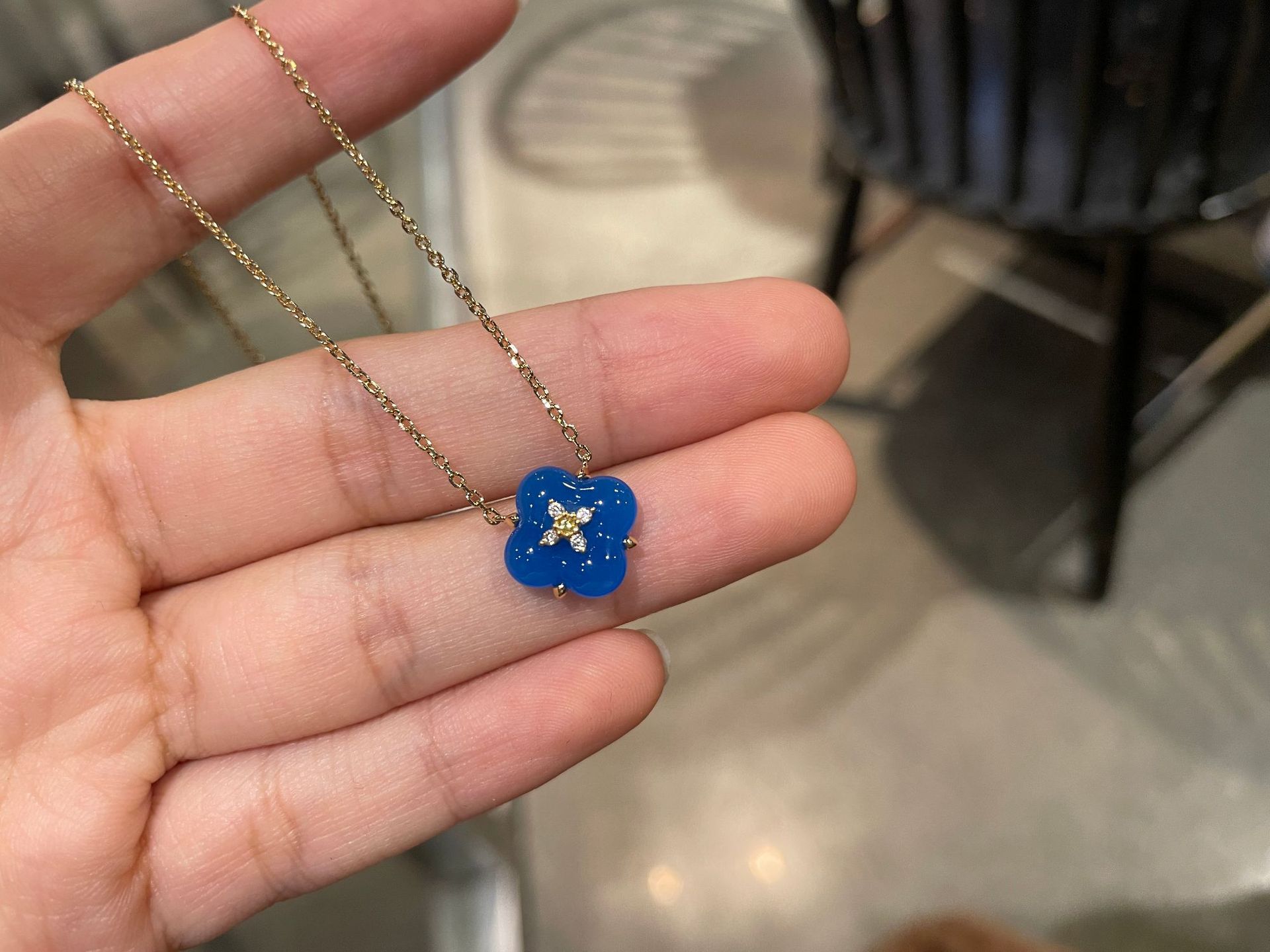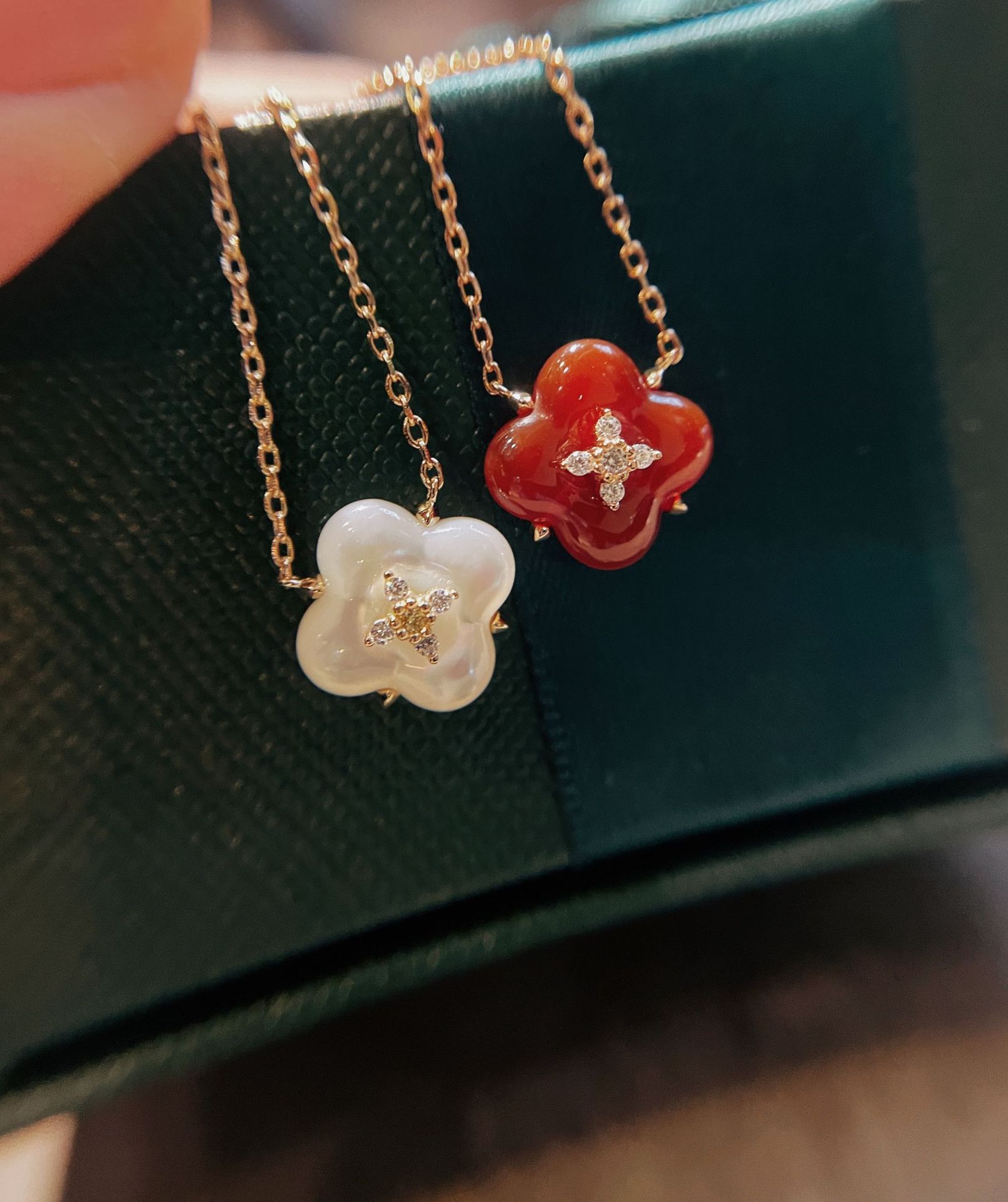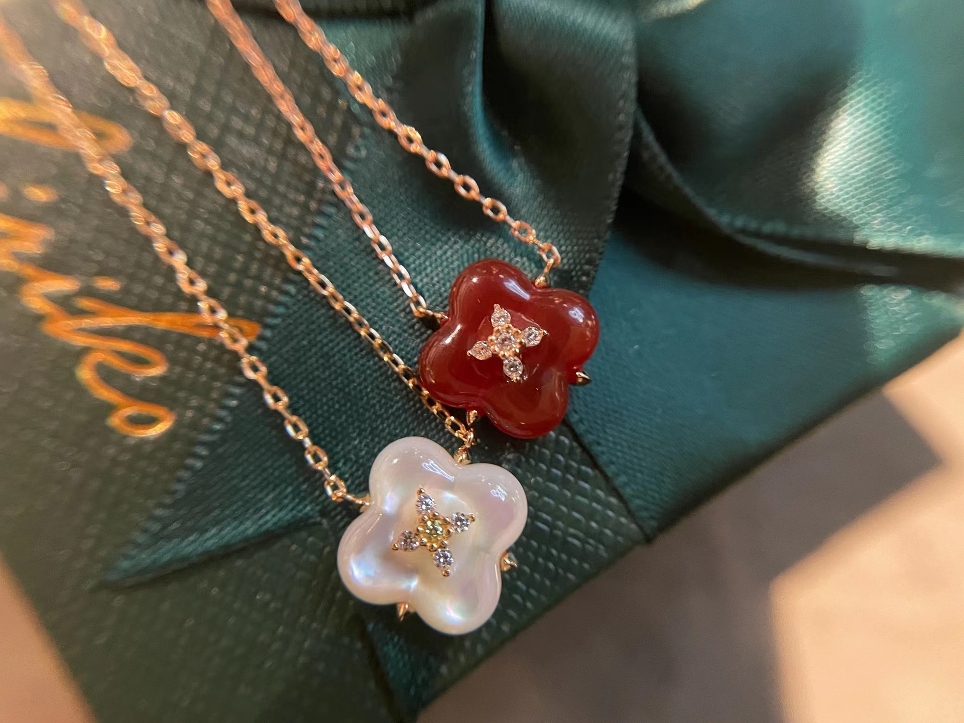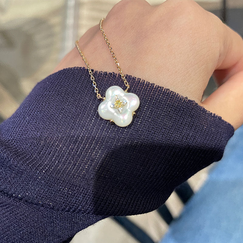 Wishing Fountain Clover Necklace White Fritillary Carnelian Blue Chalcedony Flower Pendant UK Niche