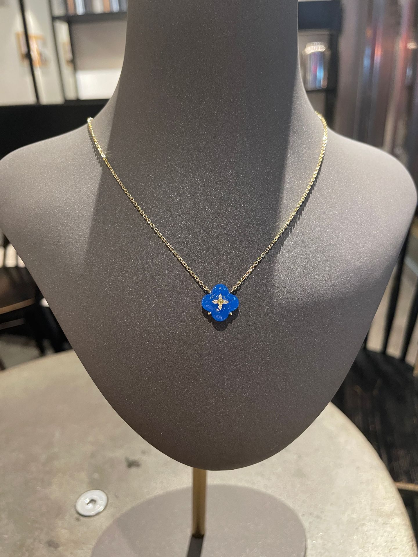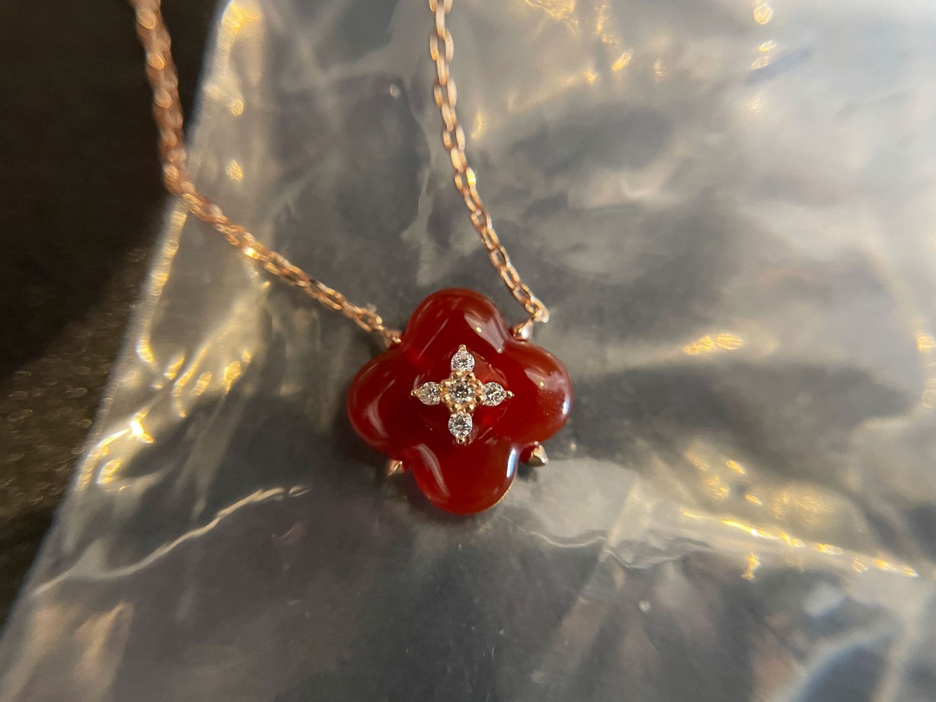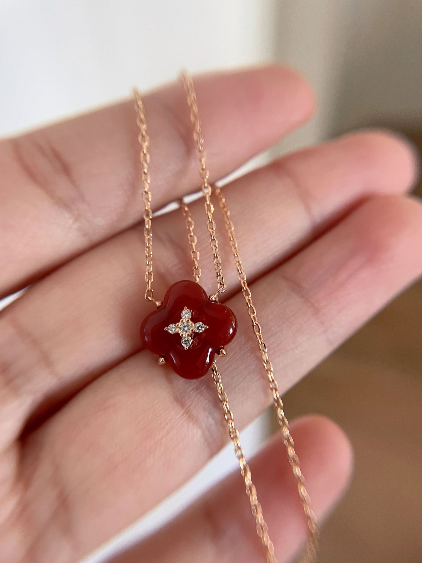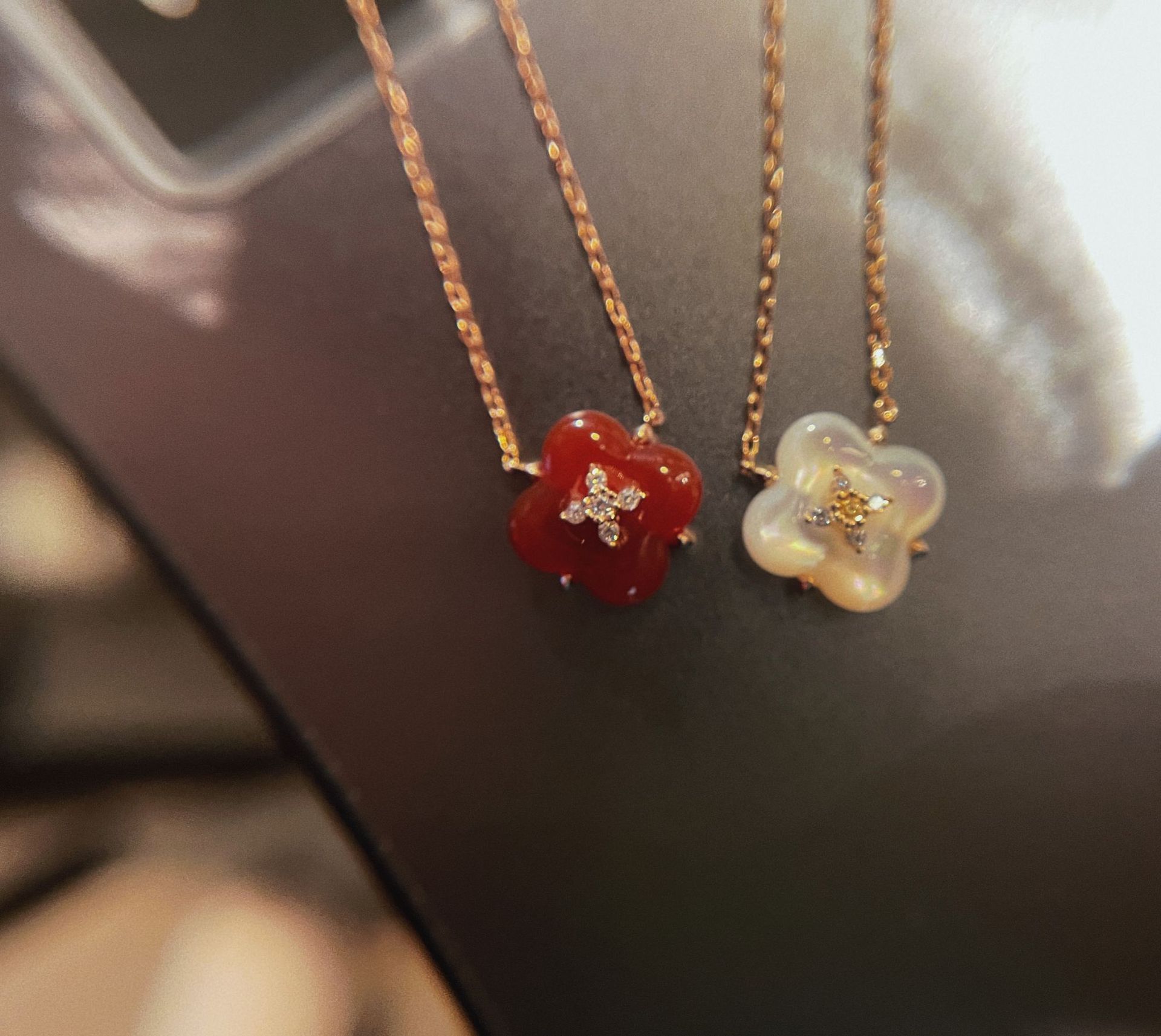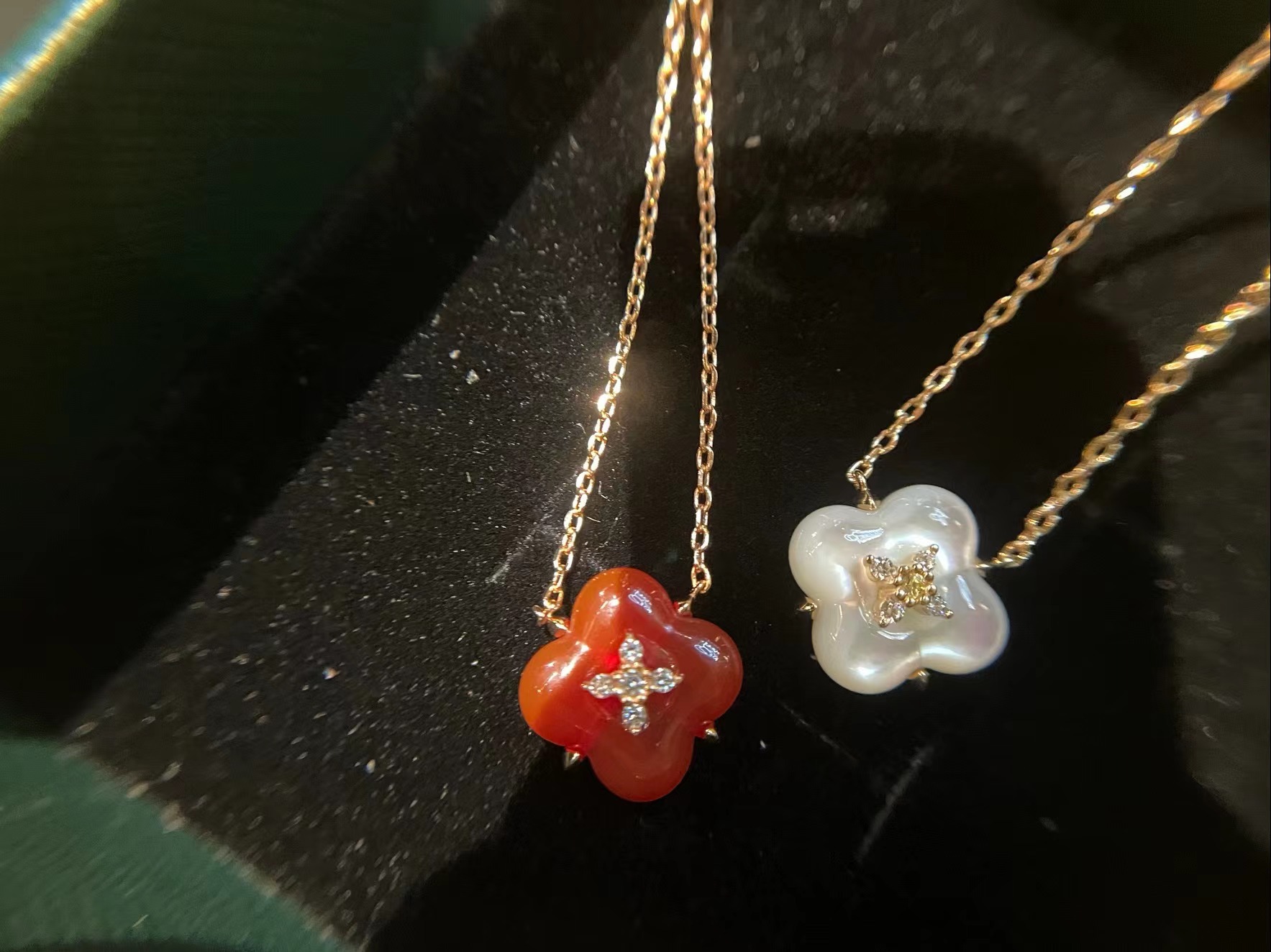 Wishing Fountain Clover Necklace White Fritillary Carnelian Blue Chalcedony Flower Pendant UK Niche