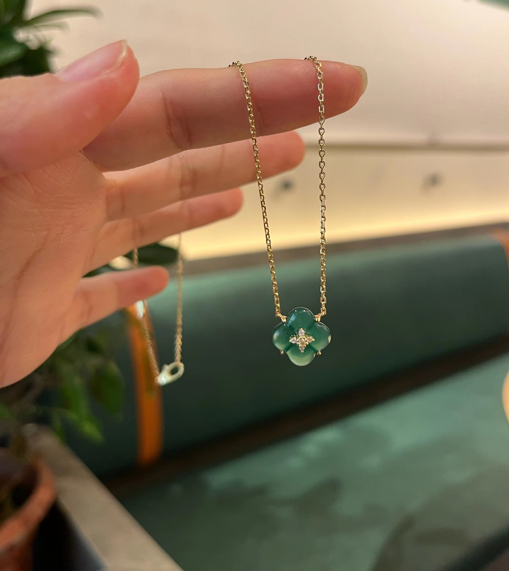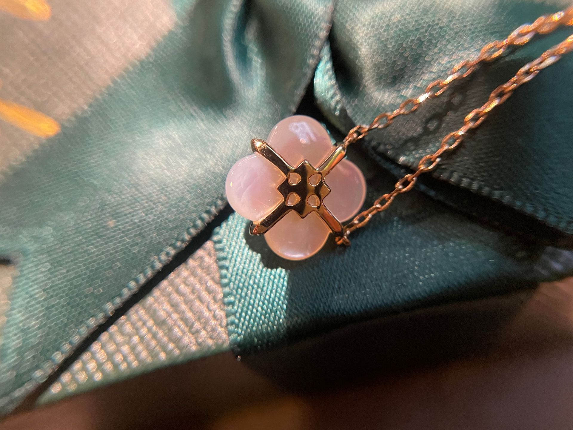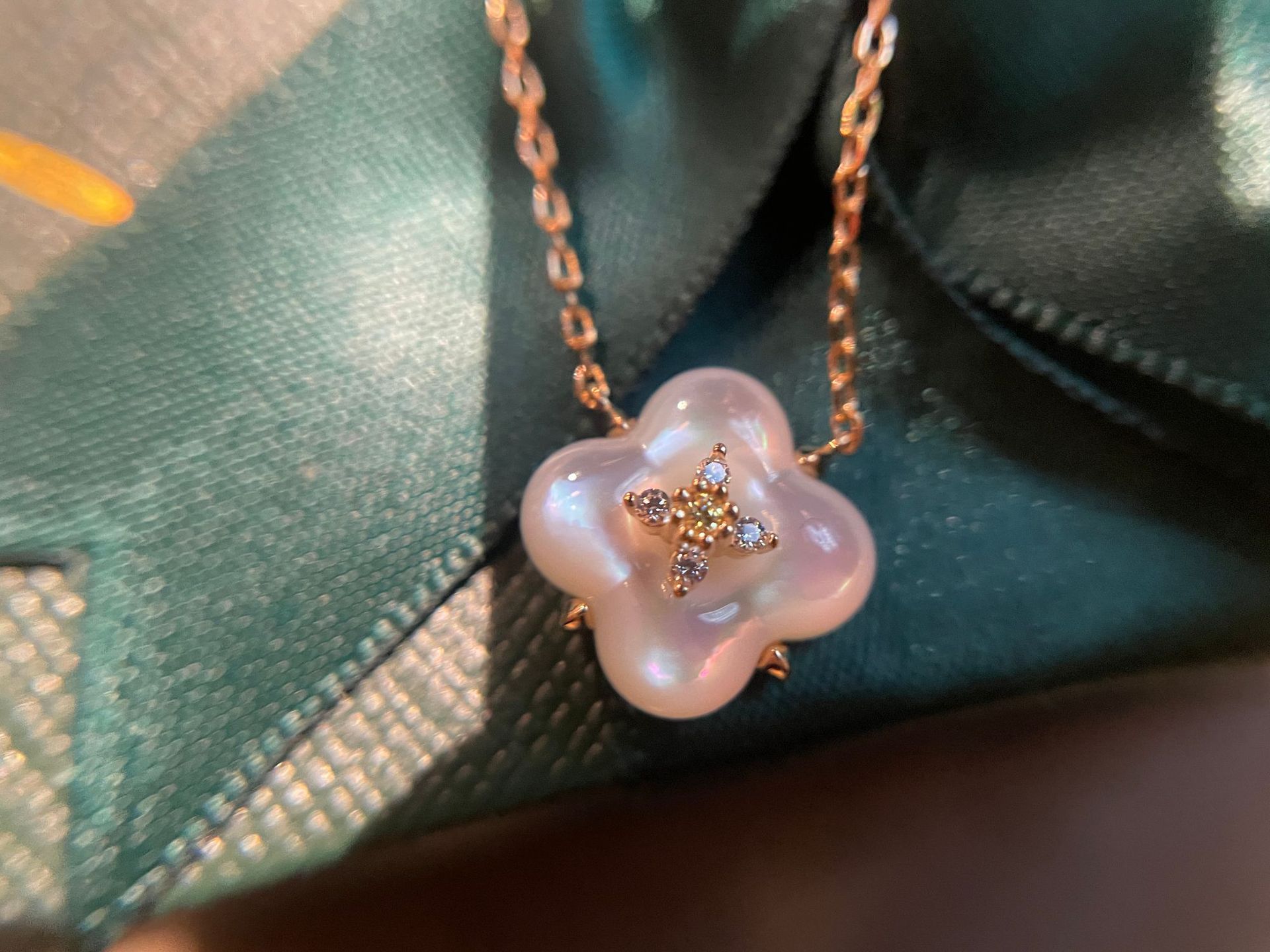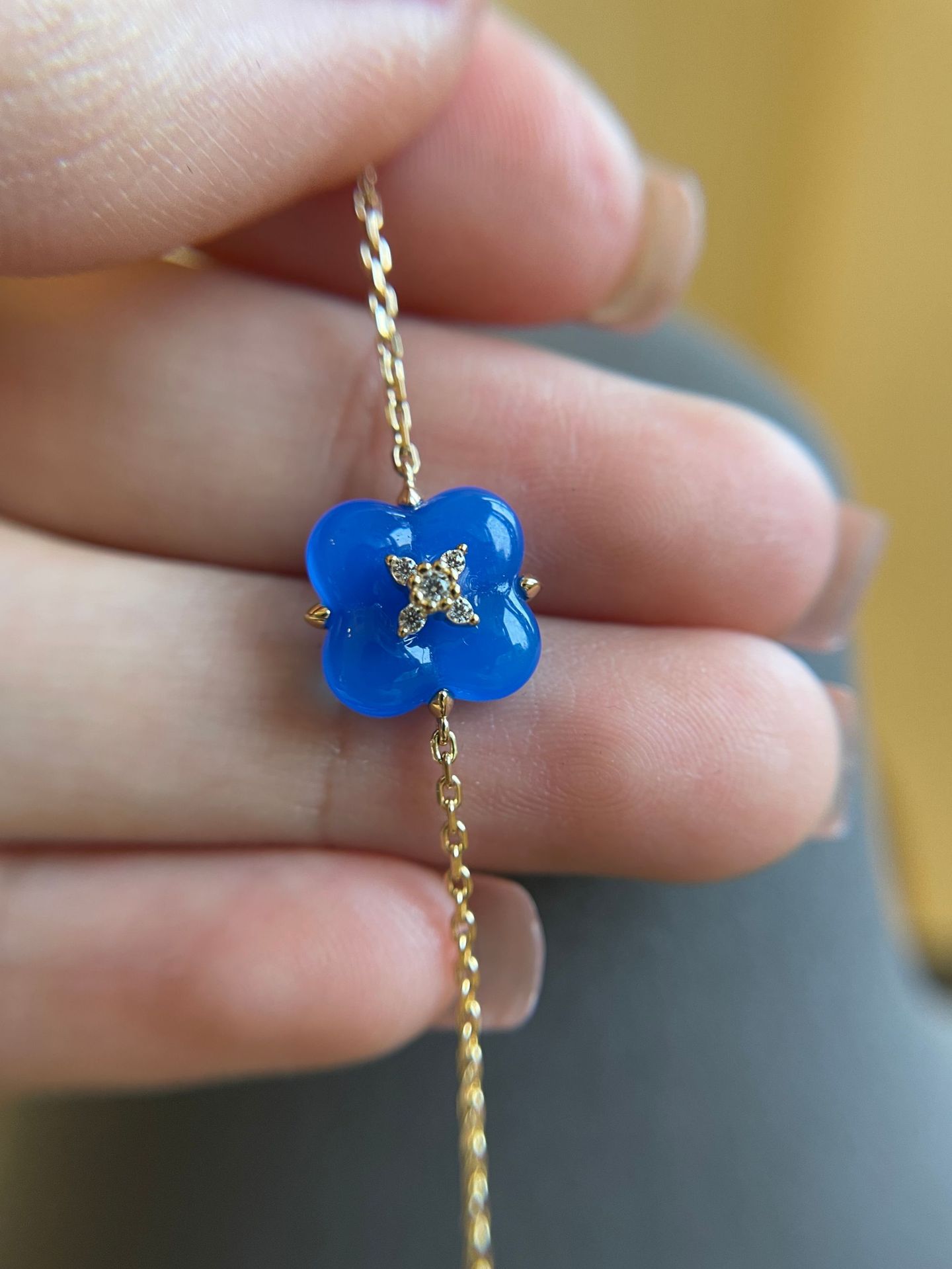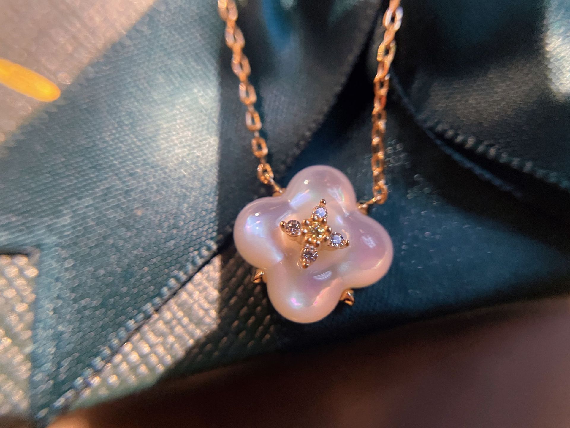 Wishing Fountain Clover Necklace White Fritillary Carnelian Blue Chalcedony Flower Pendant UK Niche
