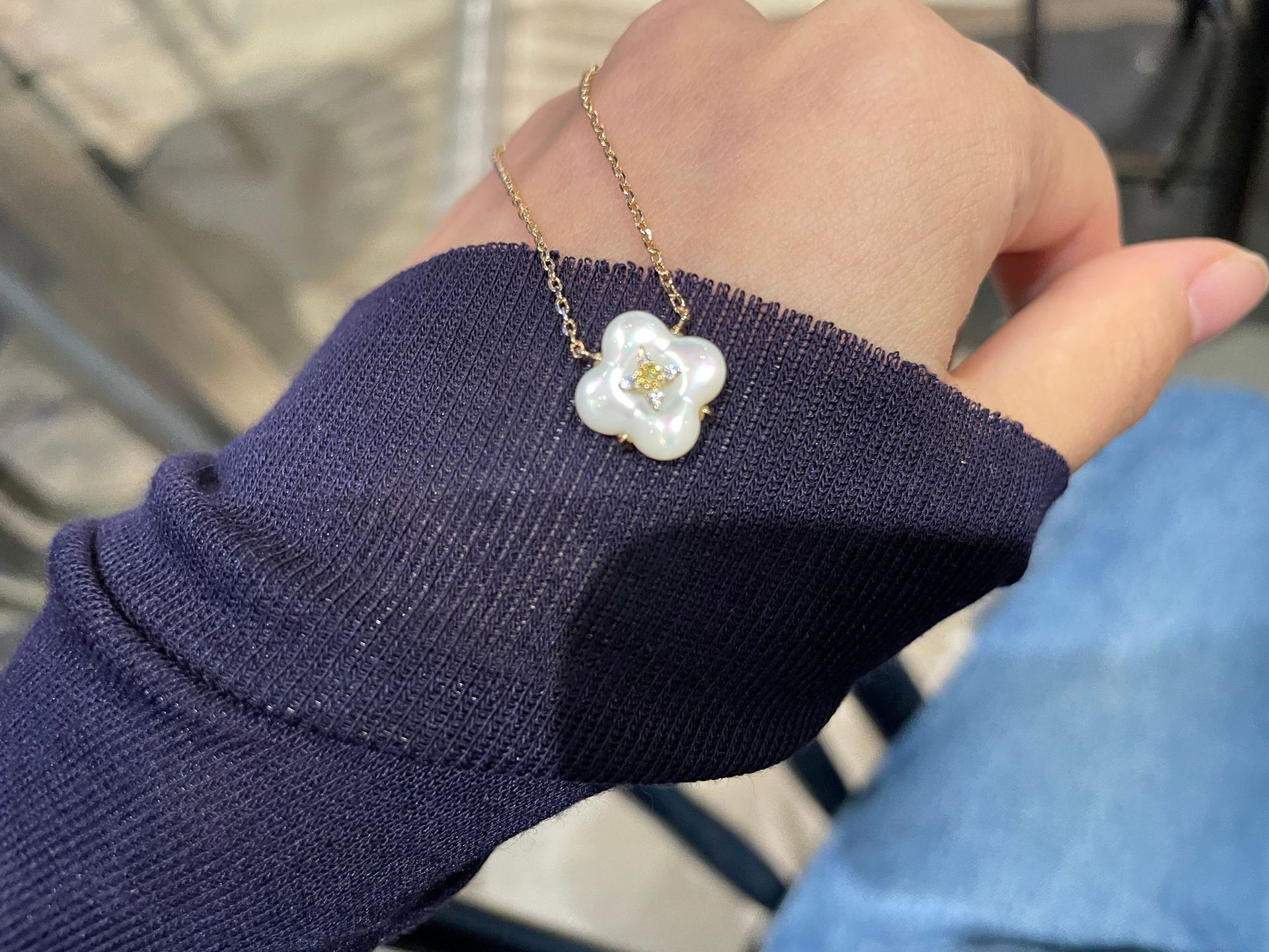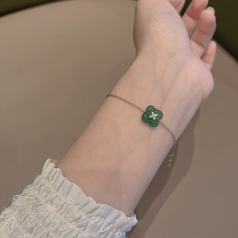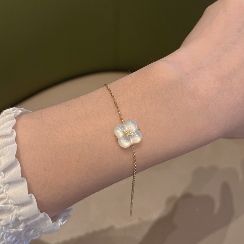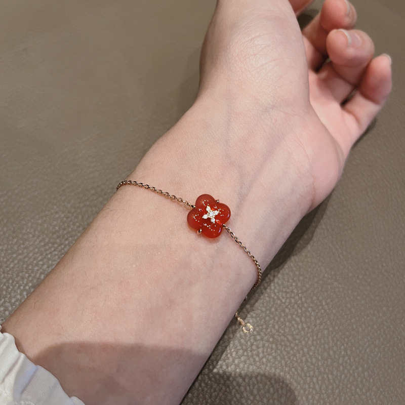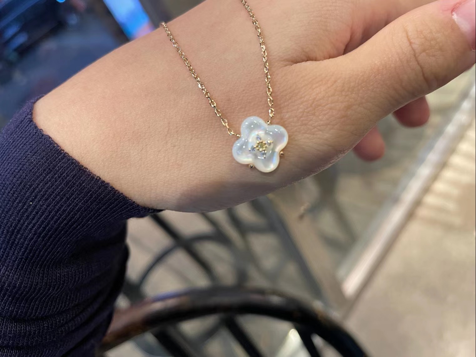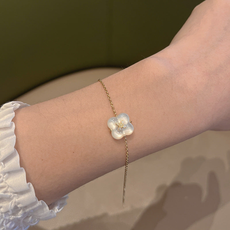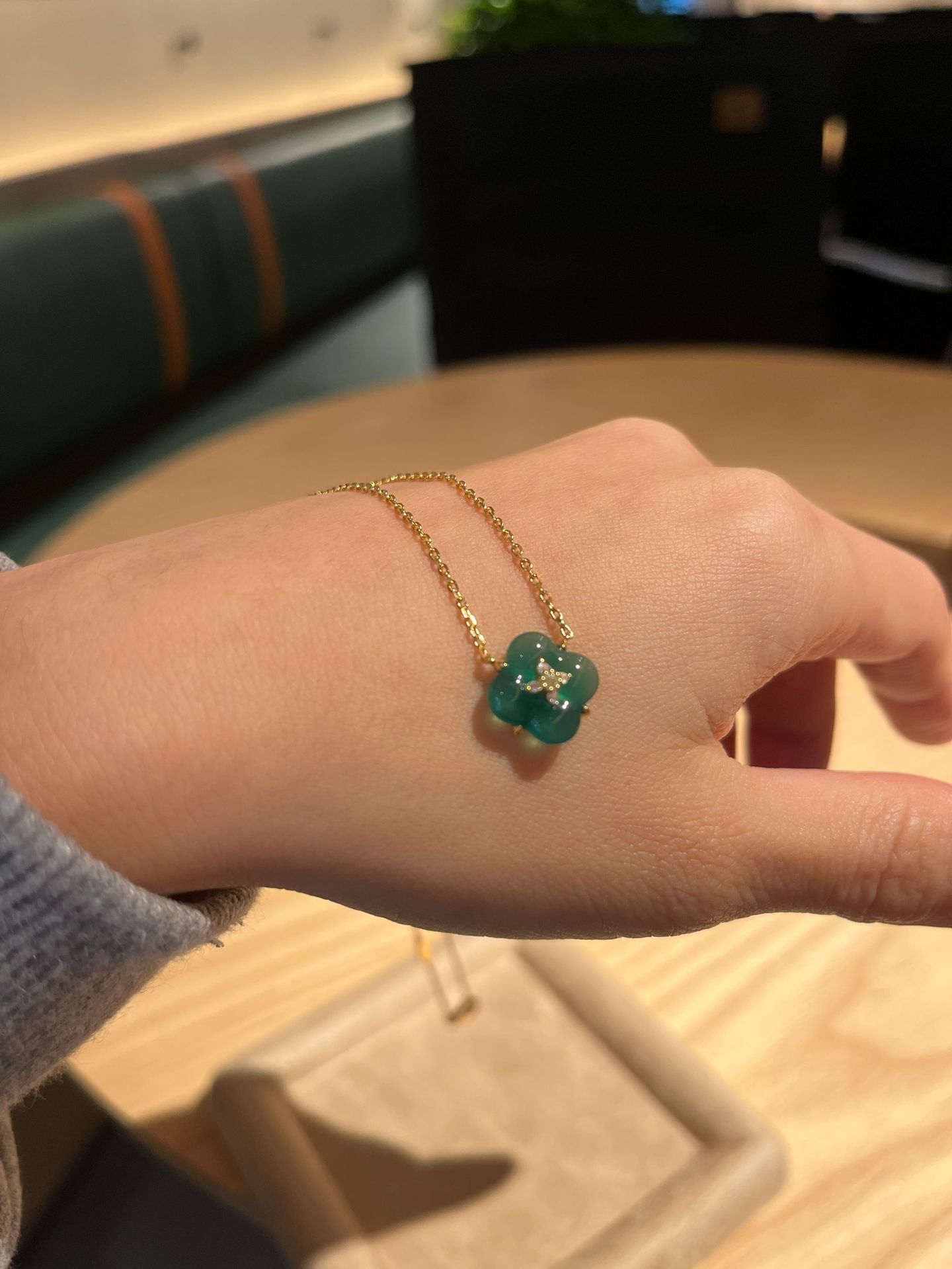 Wishing Fountain Clover Necklace White Fritillary Carnelian Blue Chalcedony Flower Pendant UK Niche
