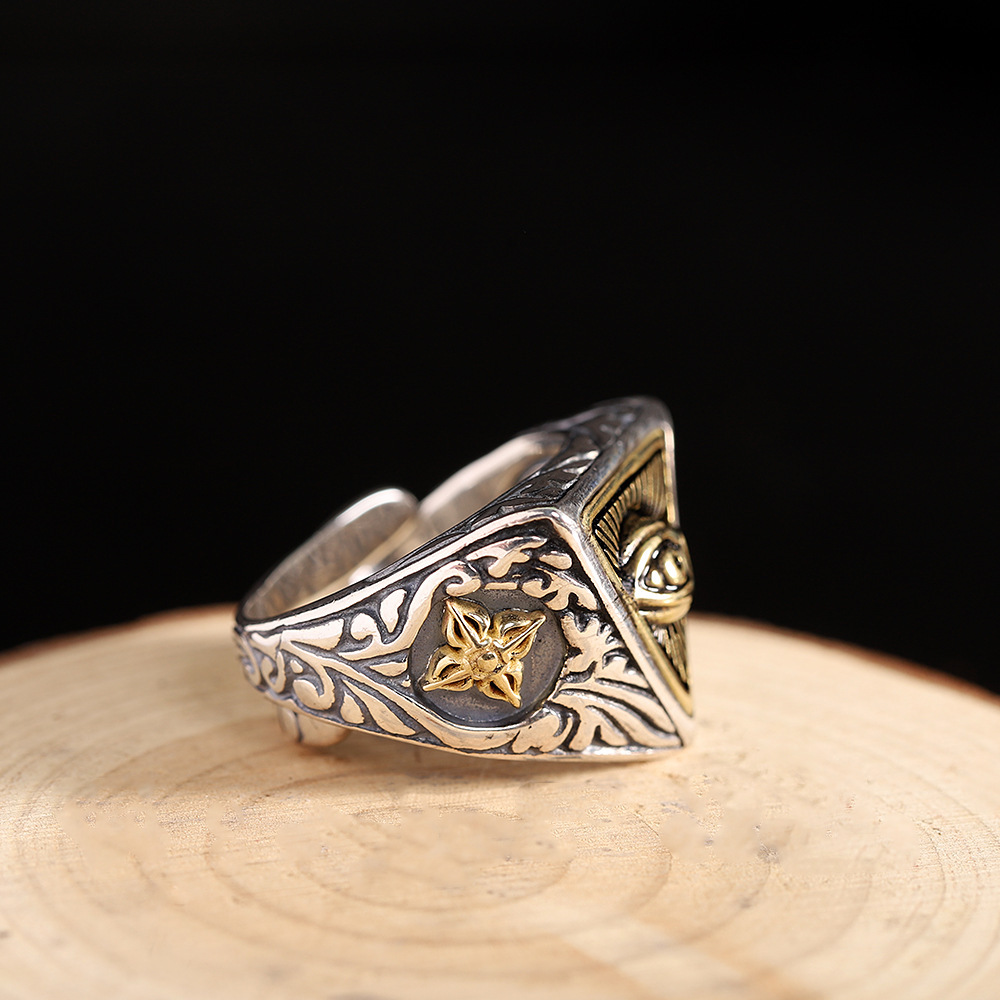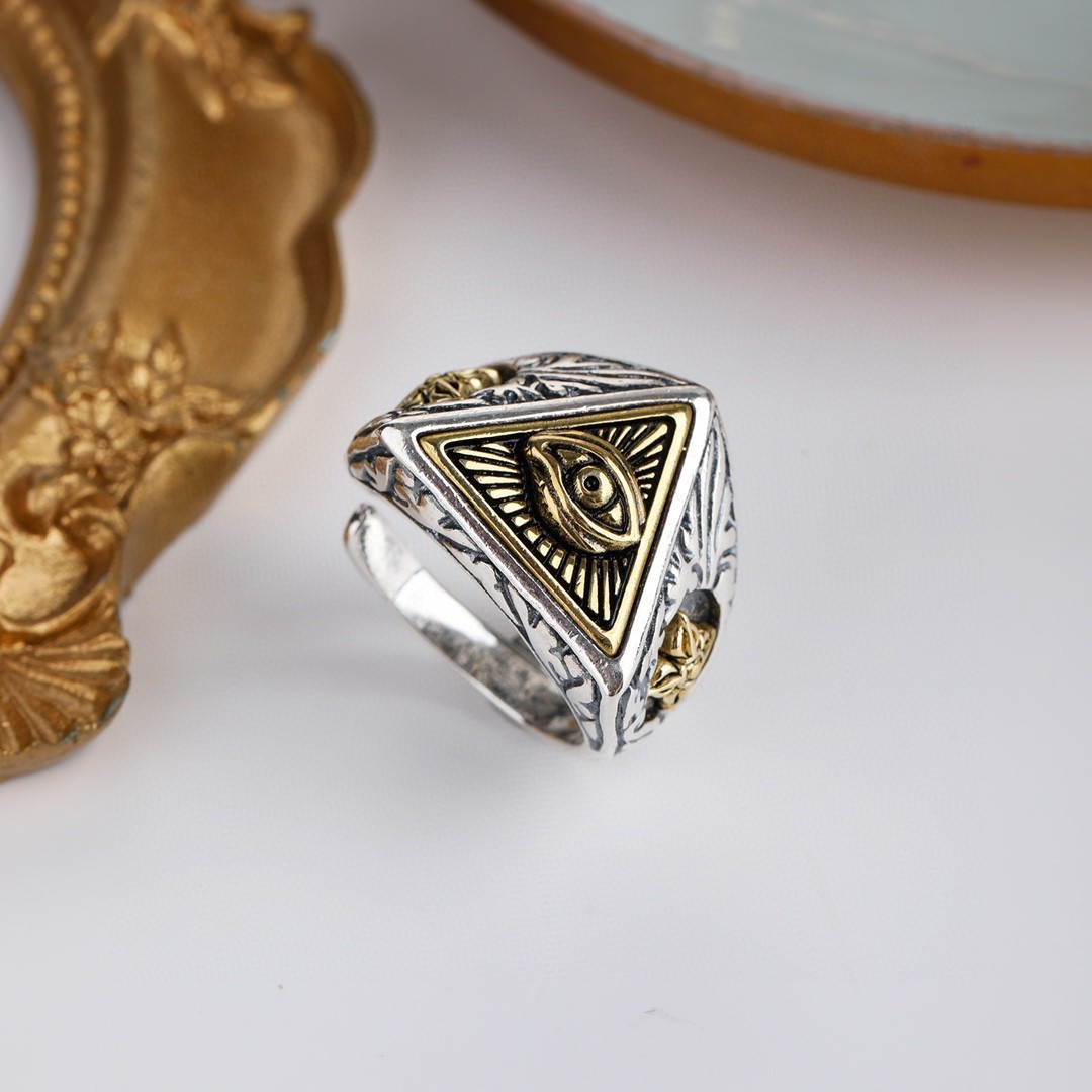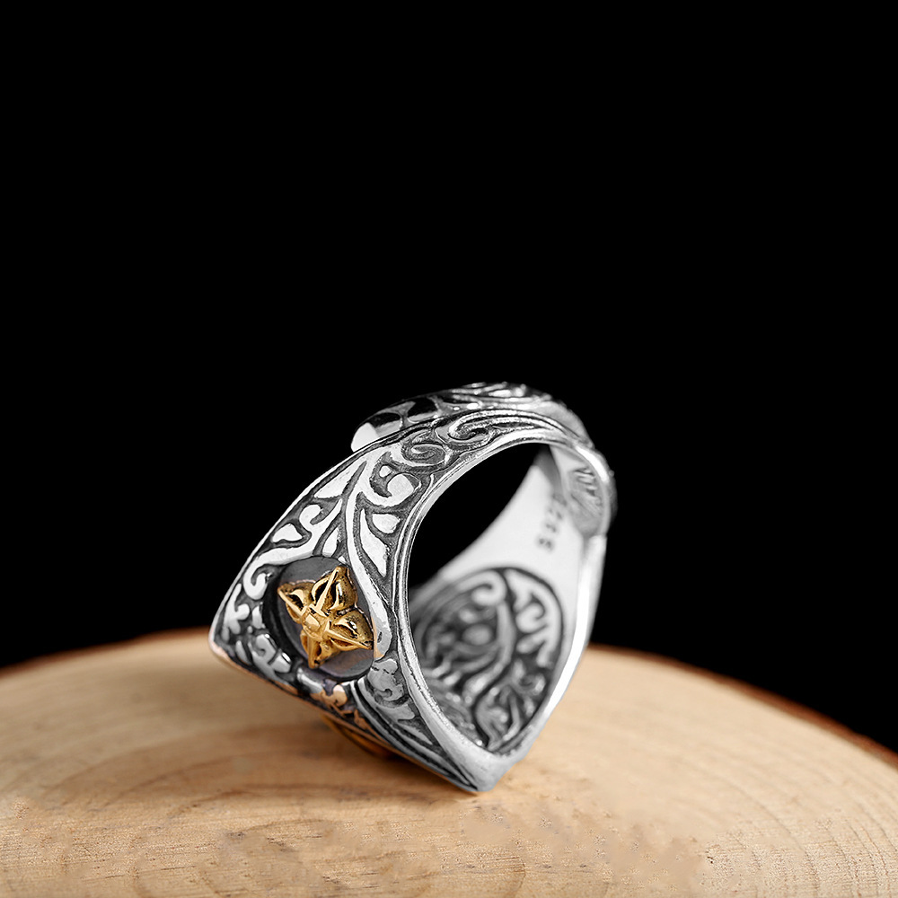 Thai silver God's eye retro cross pestle ring for men and women Japanese fashion personality star same style